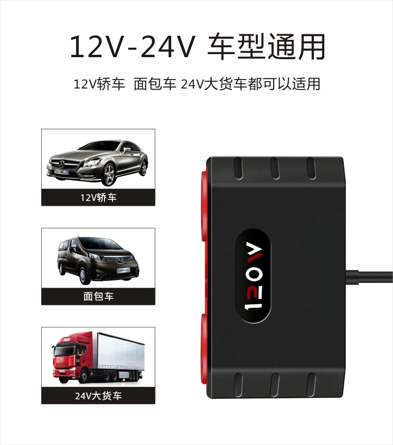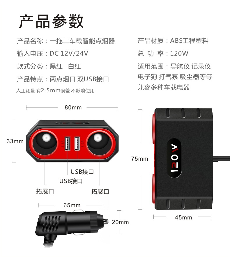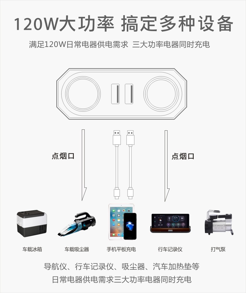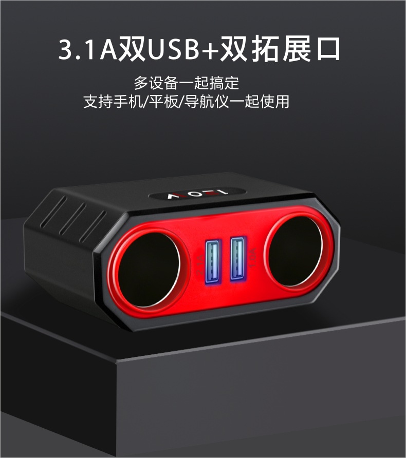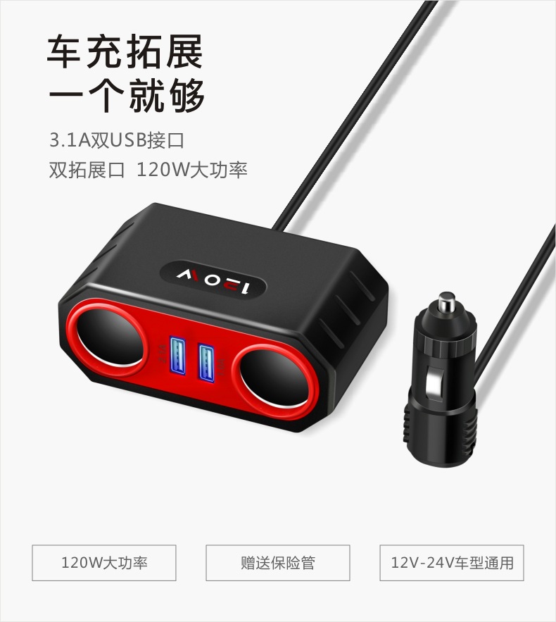 Car cigarette lighter one-to-two multi-function car adapter multi-purpose plug one-to-two USB mobile phone charger