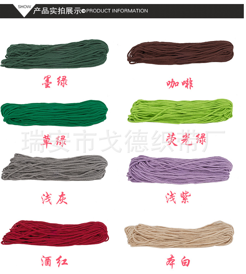 Factory direct color eight-strand cotton rope hollow waist drawstring manual DIY24 color spot wholesale