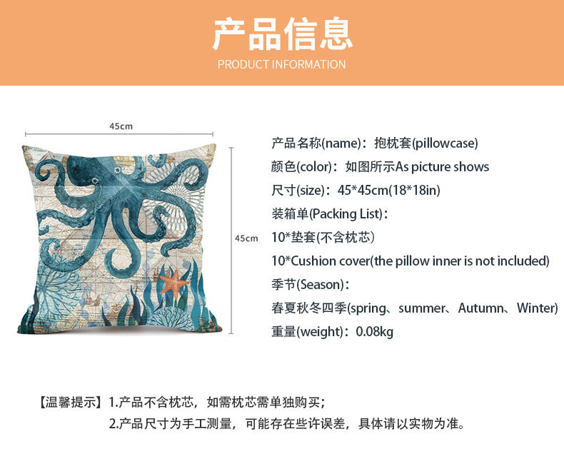 Cross-Border Marine Life Turtle Seahorse Whale Octopus Cushion Cover Pillow Cover Ebay Amazon Can Be Customized According to Drawings