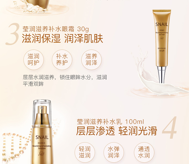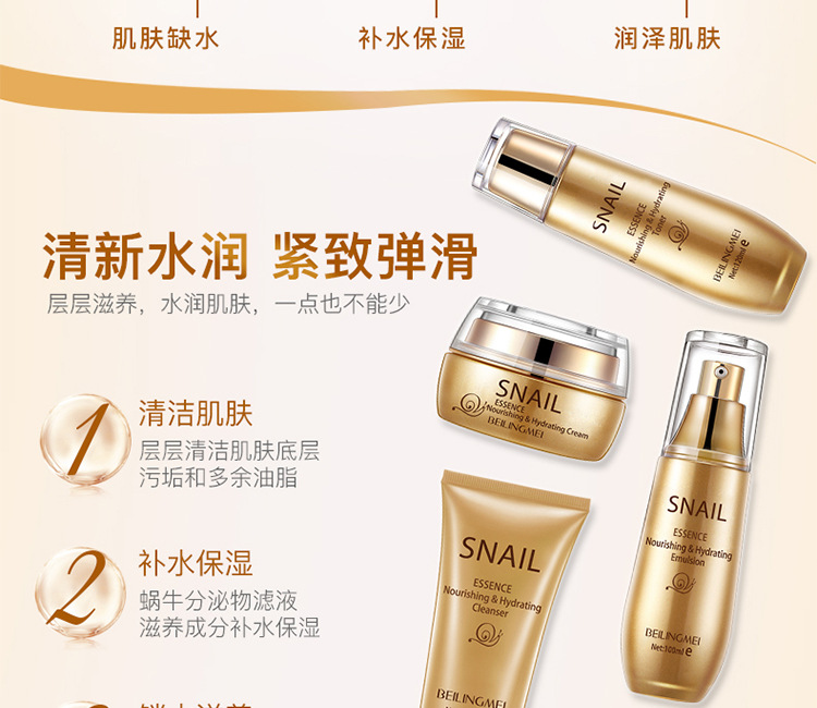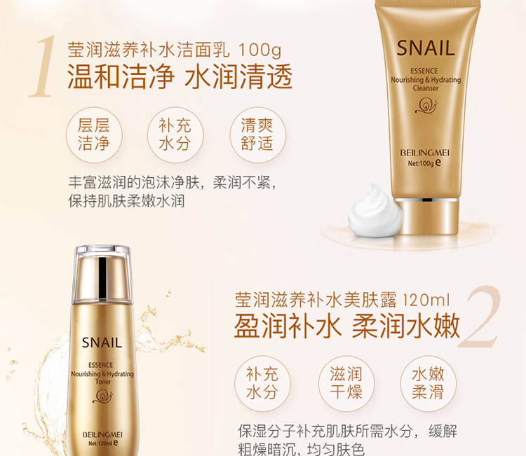 Bei Lingmei Snail Essence Yingrun Hydrating Water Emulsion Set Facial Care Nourishing Moisturizing Rejuvenating Skin Care Products