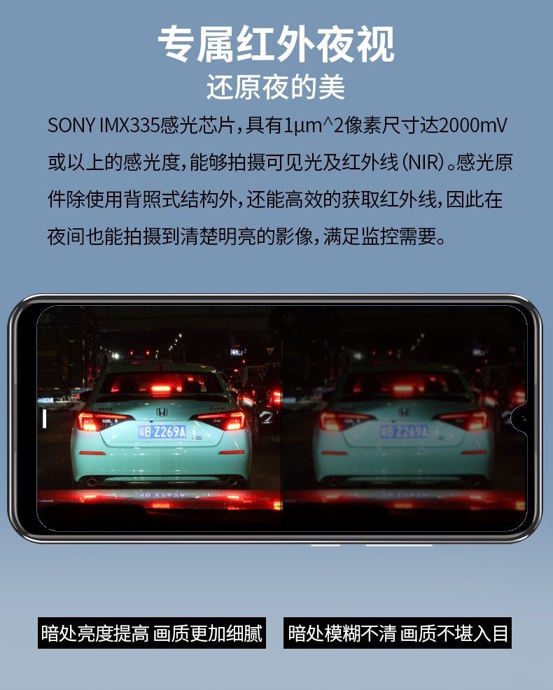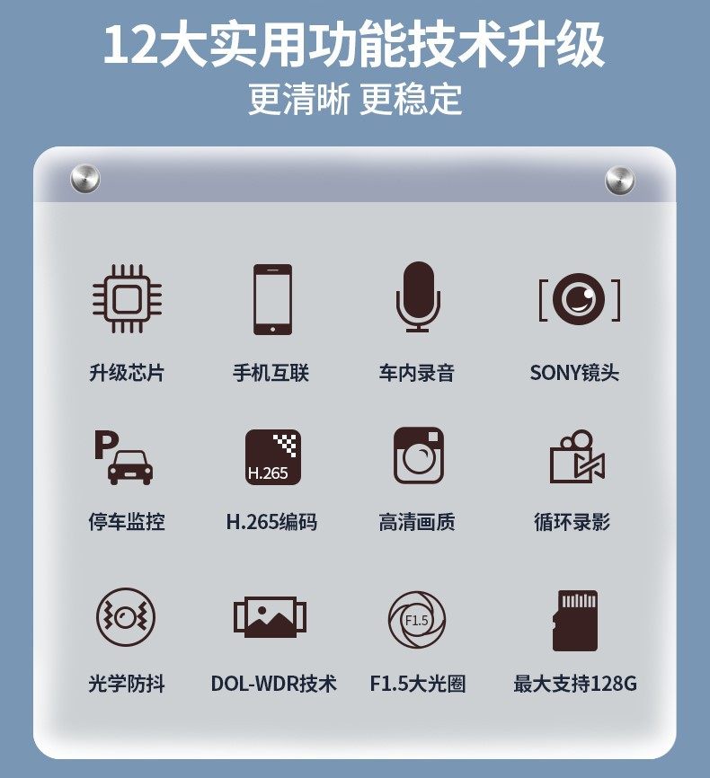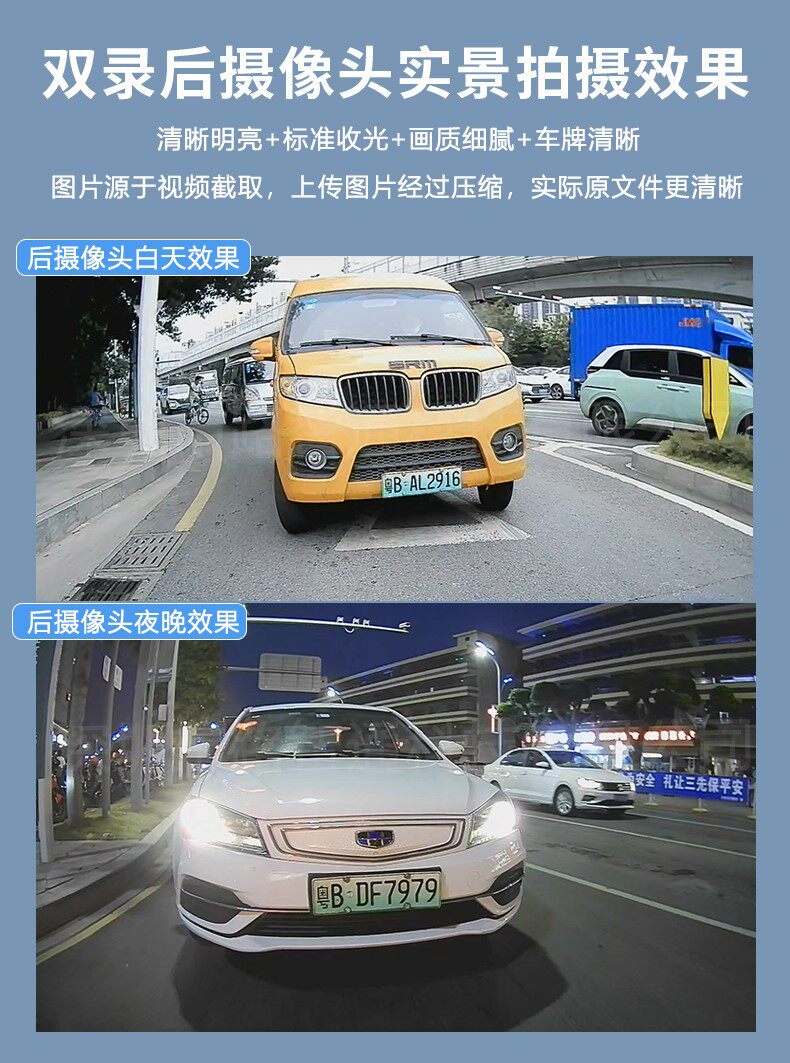 | Function | Loop recording,Parking monitoring,Night vision fill light,Collision sensor,Night vision enhancement,Characteristic correction on the picture,Front and rear video recording,Short video sharing |