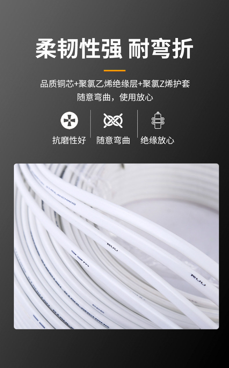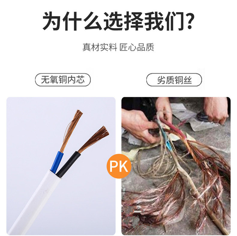 Manufacturers sell white copper soft sheathed wire and cable soft copper wire two-core white flat core sheathed wire