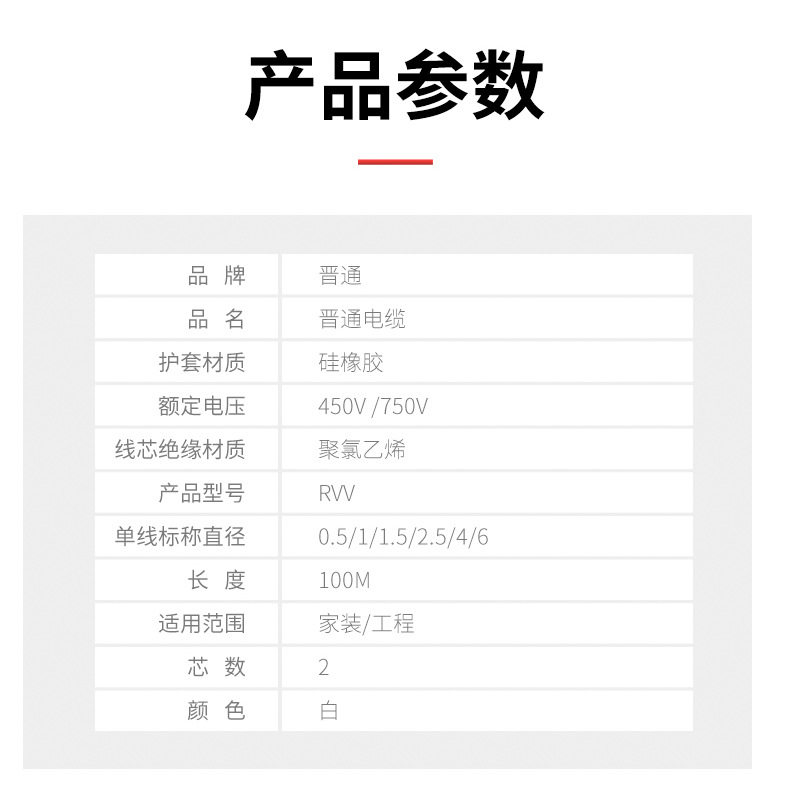 | Specifications and models | 2*0.5*100 m,2*1*100 meters,2*1.5*100 m,2*2.5*100 meters,2*4*100 meters,2*6*100 m |