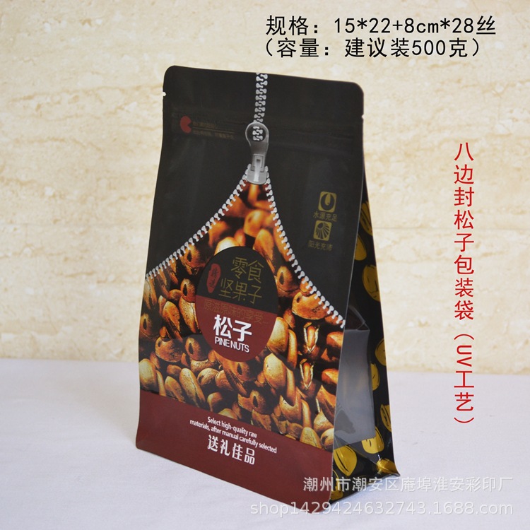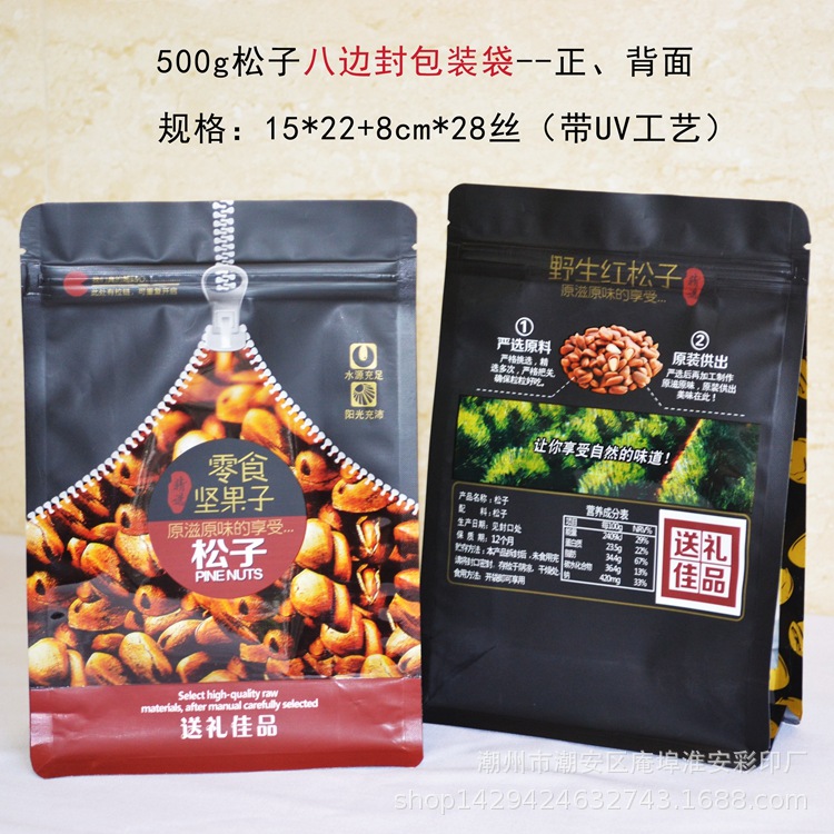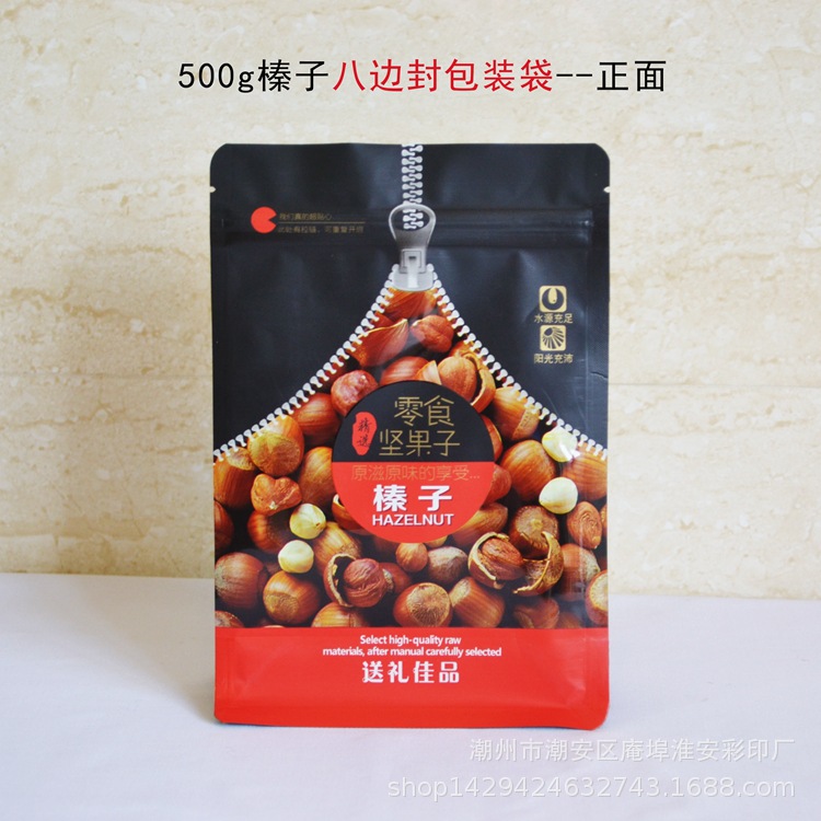500g Hazelnut Eight-sided Sealing Bag, Best-selling Pine Nut Eight-sided Sealing Ziplock Bag, Printed LOGO Nut Snack Packaging Bag