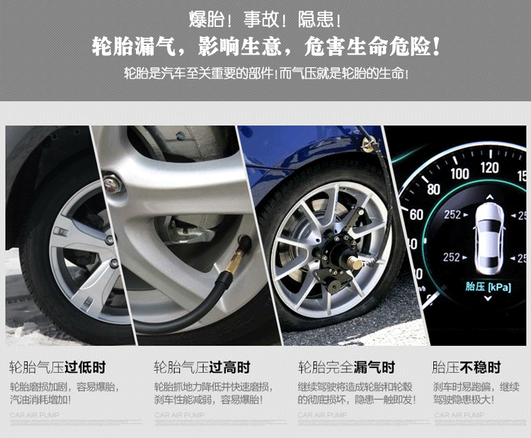 Car Horizontal Bar Air Pump Single Cylinder Car Tire Air Pump 12V Portable Metal Electric Emergency Tool