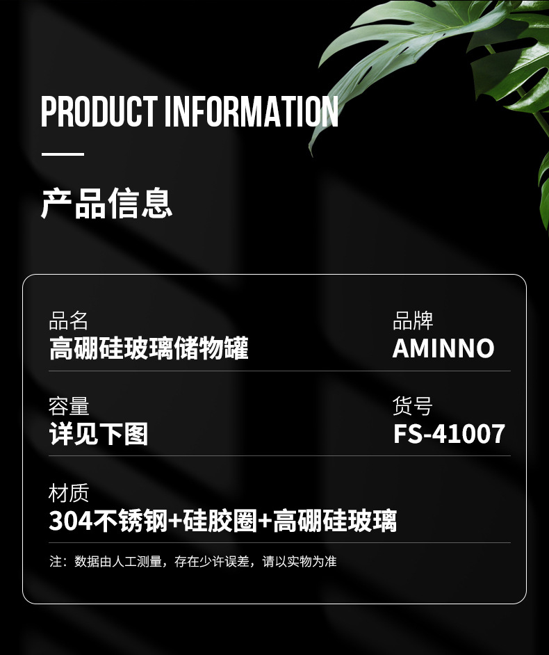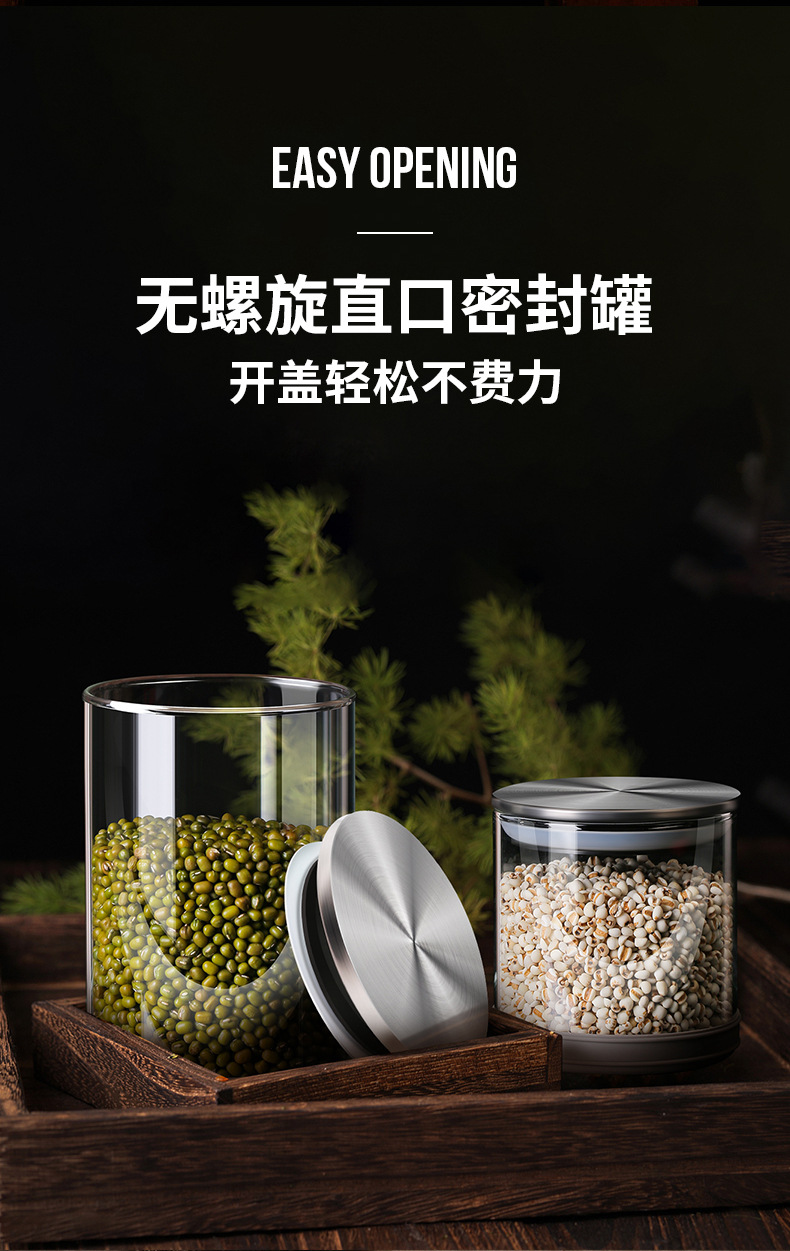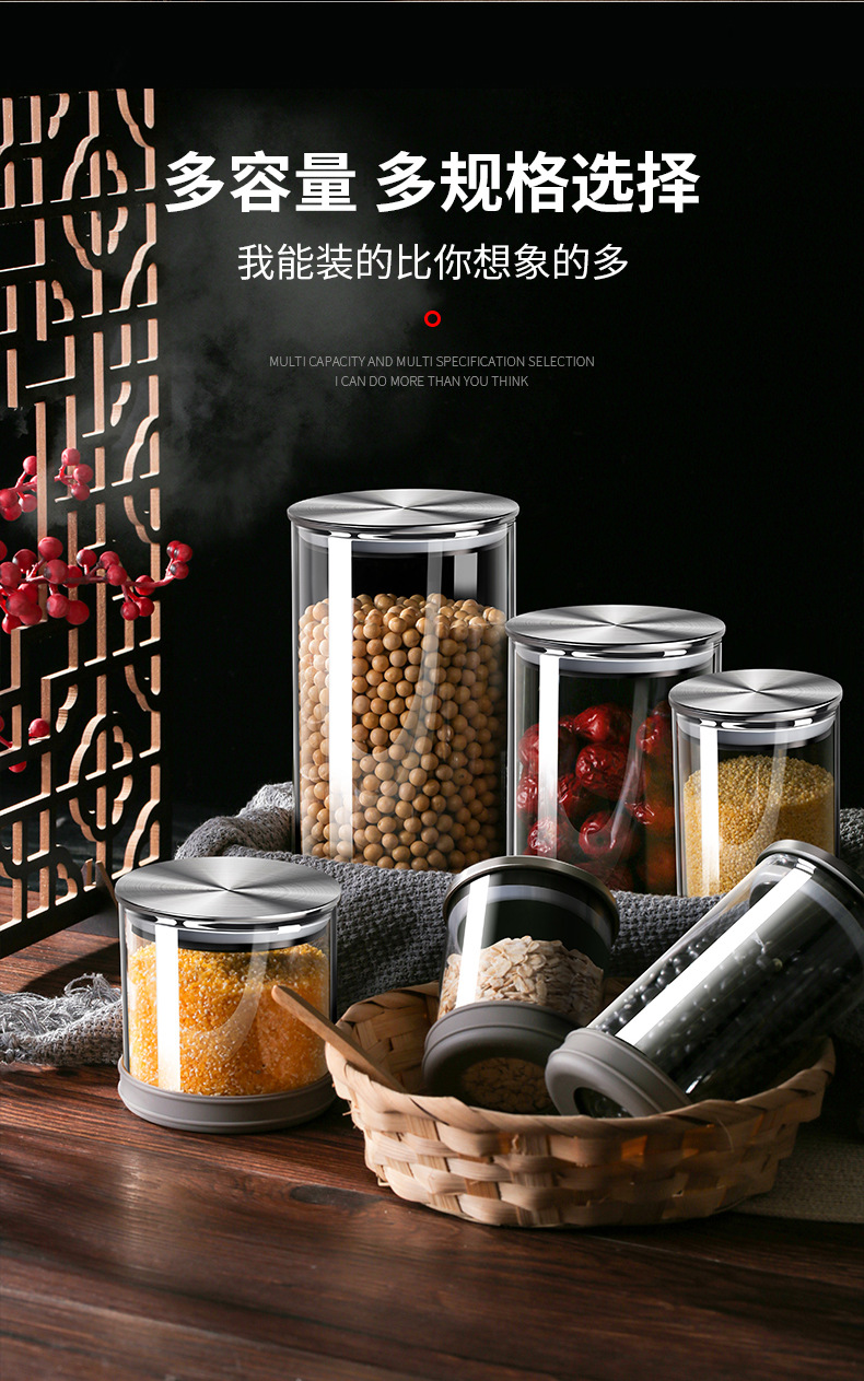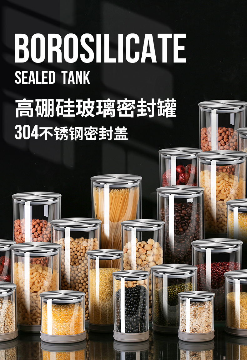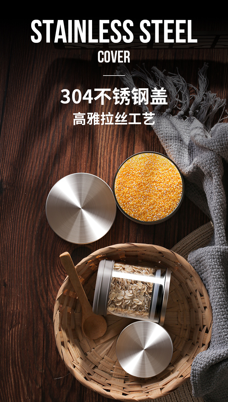 Emeno Food Grade 304 Stainless Steel Storage Jar High Borosilicate Glass Sealed Jar Storage Jar for Hair