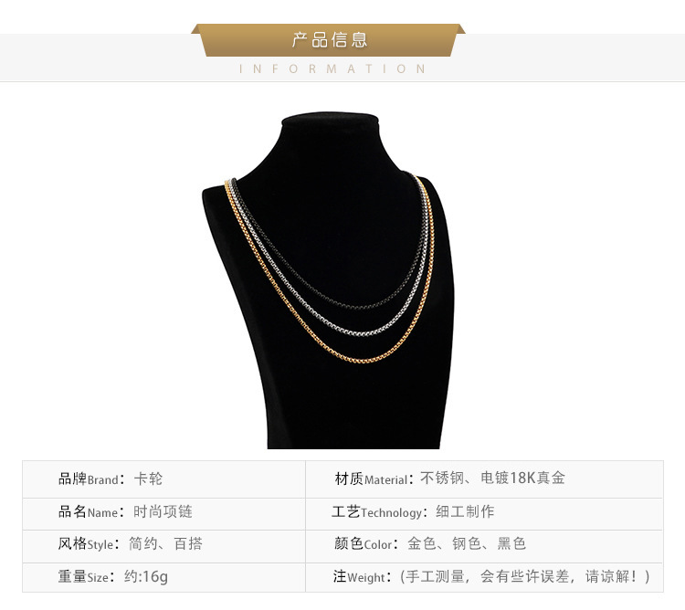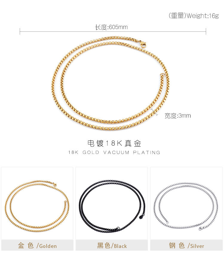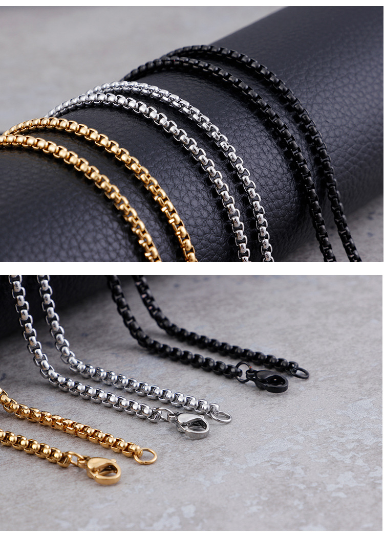 Stainless steel necklace square pearl chain men and women titanium steel necklace card wheel new jewelry European and American jewelry manufacturers wholesale
