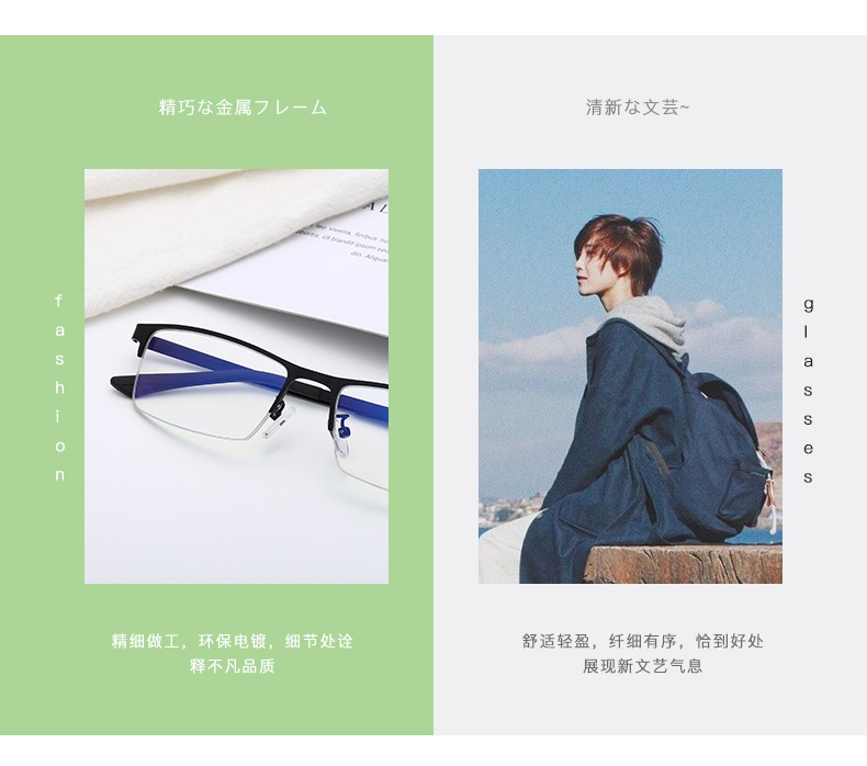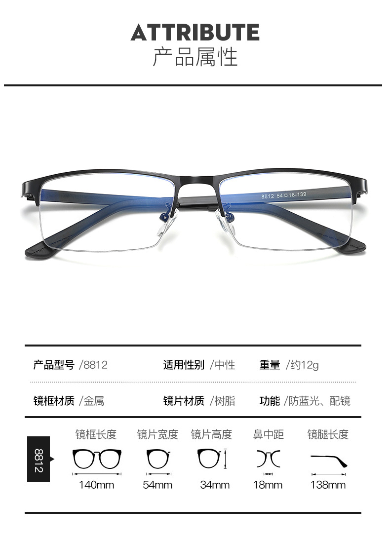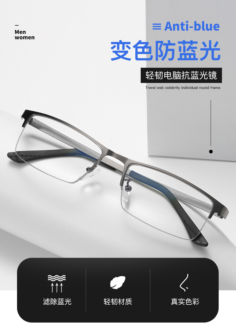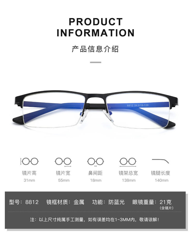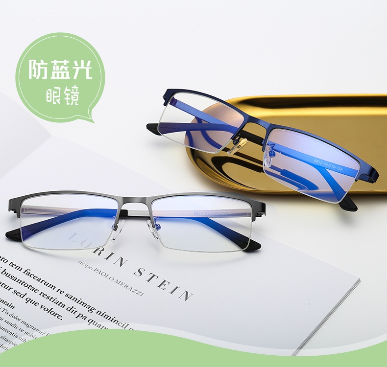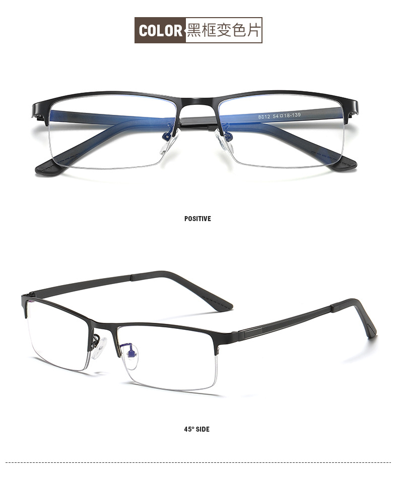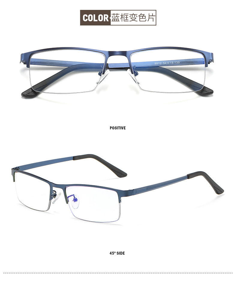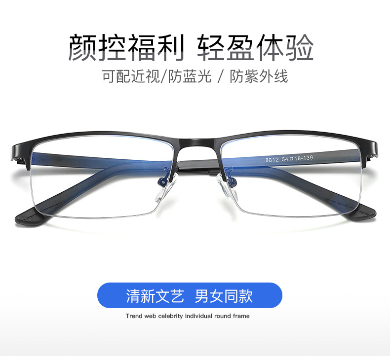 Internet Celebrity Glasses Frame Anti-Blue Light Glasses Half-Frame Square Flat Light Photochromic Mobile Phone Computer Goggles 8812