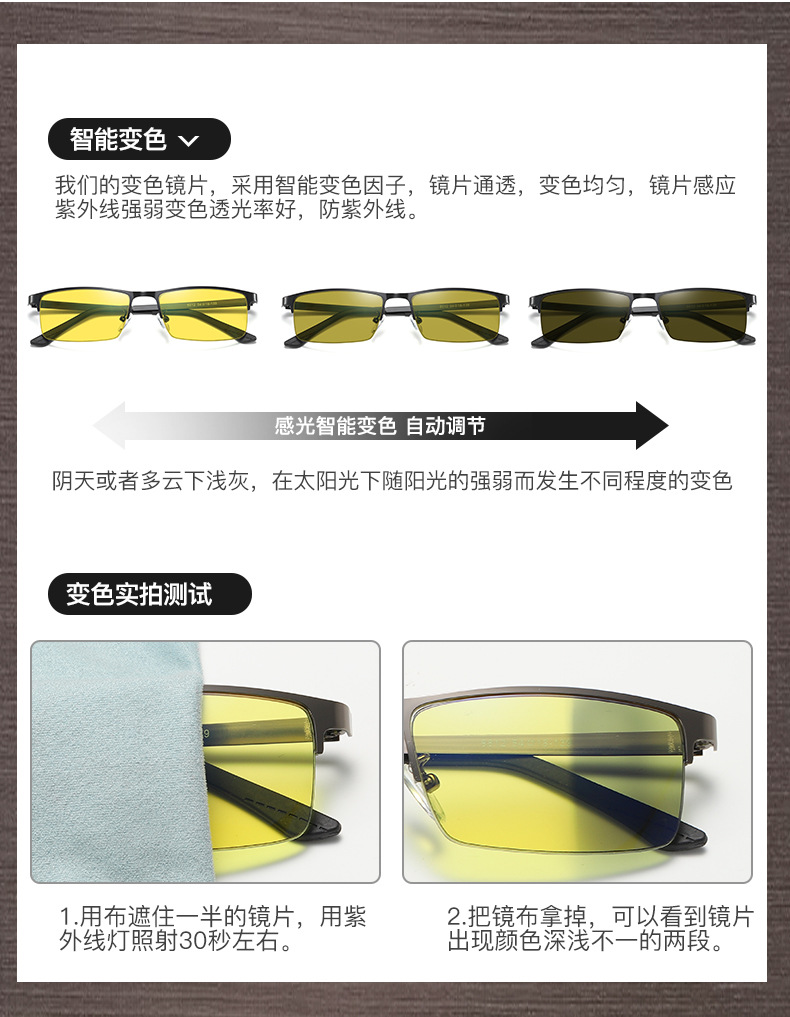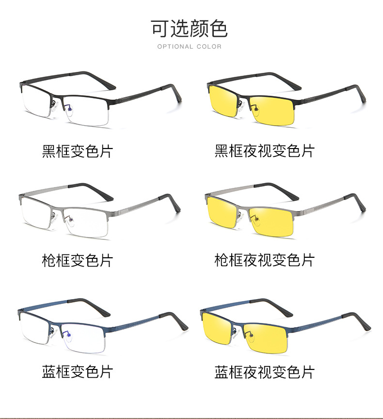 | Lens color | Transparent anti-blue light sheet,Light and dark gray anti-blue light anti-ultraviolet color change film,Yellow film turns gray night vision color film |