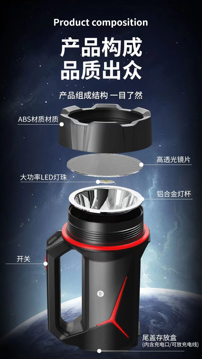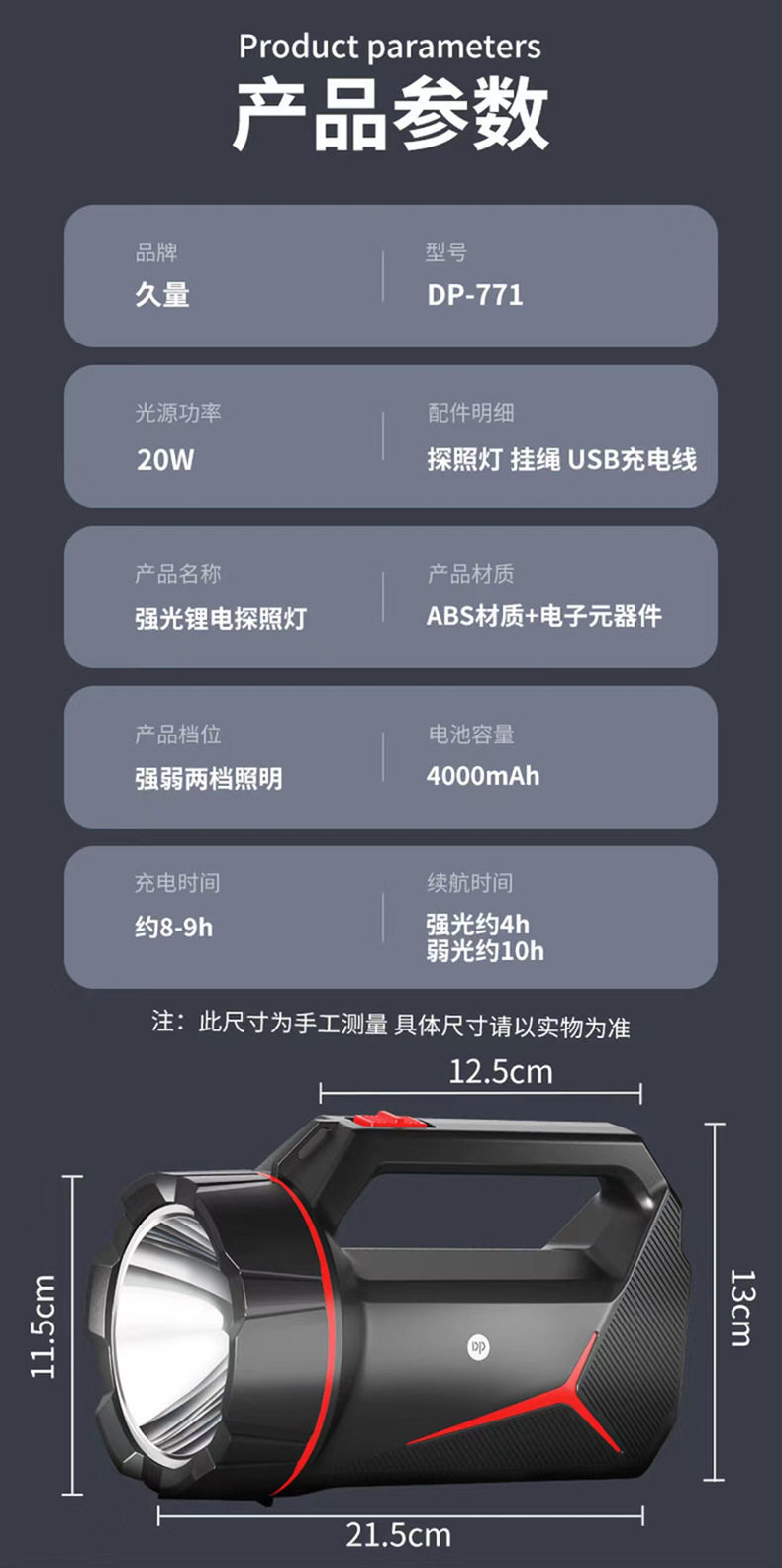 Long-term portable led Searchlight rechargeable strong light household emergency long-range outdoor lighting site patrol light 771