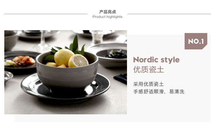 Nordic household simple ceramic eating bowl large noodle bowl soup bowl dish plate dish dinner plate dish tableware