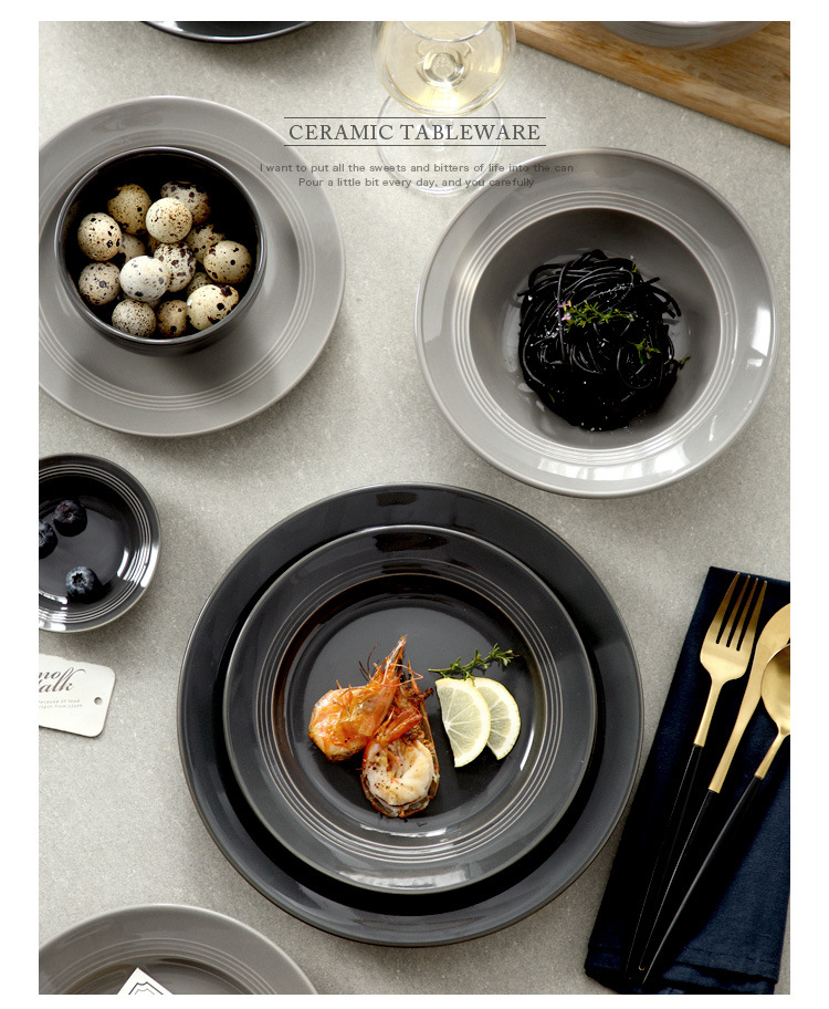 | Item No. | Black and gray round line tableware bulk |