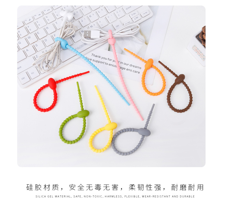 A2684 Silicone Strap Storage Soft Tape Data Cable Trapped Cable Manager Cable Winder Silicone Cable Management Tape