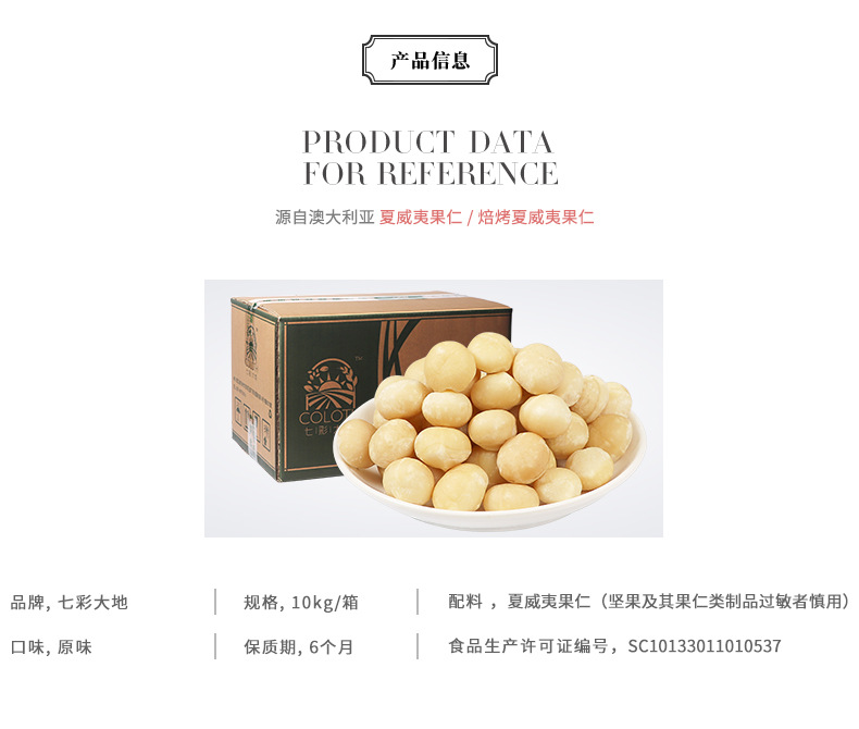 Colorful earth baking Hawaiian nuts light roasted original nut snacks baking raw materials 10kg/box