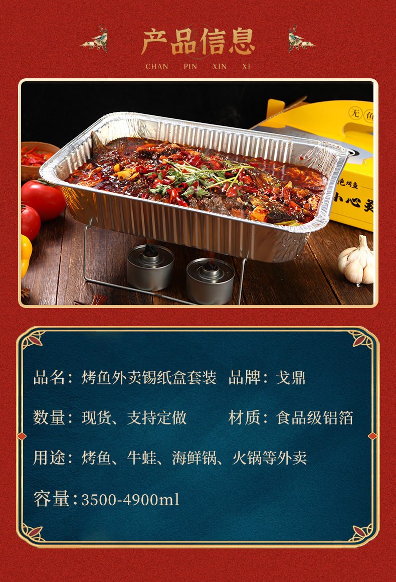 4900ml grilled fish takeaway lunch box household aluminum foil plate disposable packing box crayfish tin paper box with lid