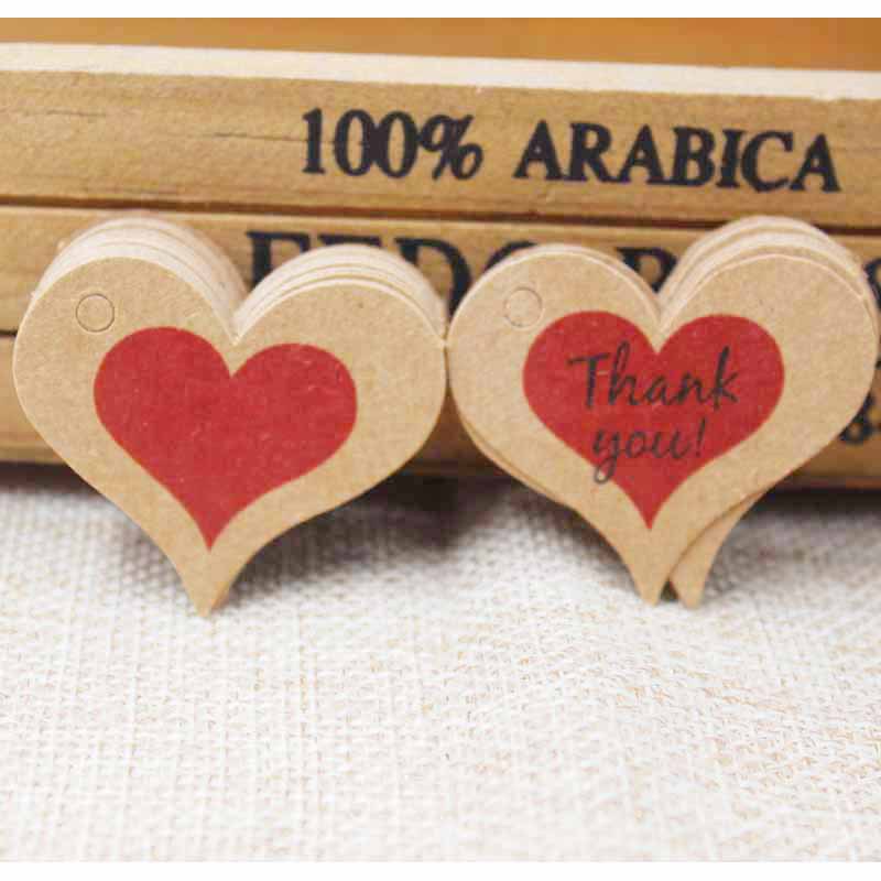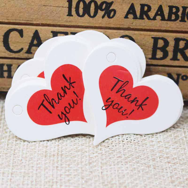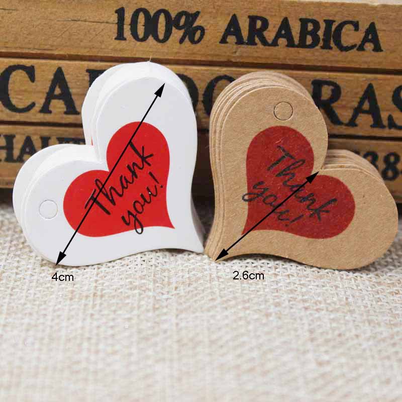 100 pieces 4x 2.6cm Thank you red heart hanging card DIY cute label tag