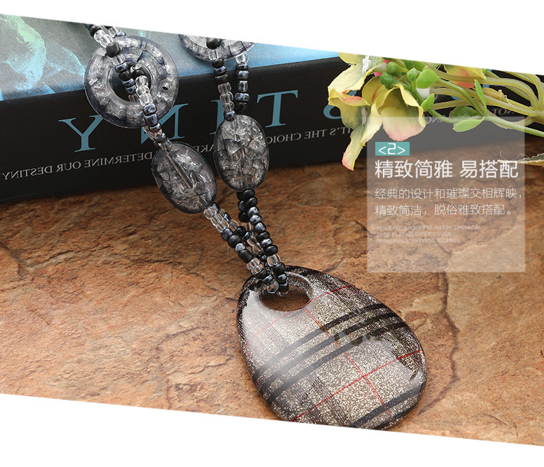Necklace elegant long retro ethnic style sweater chain internet celebrity TikTok live cotton and linen clothing accessories artistic jewelry