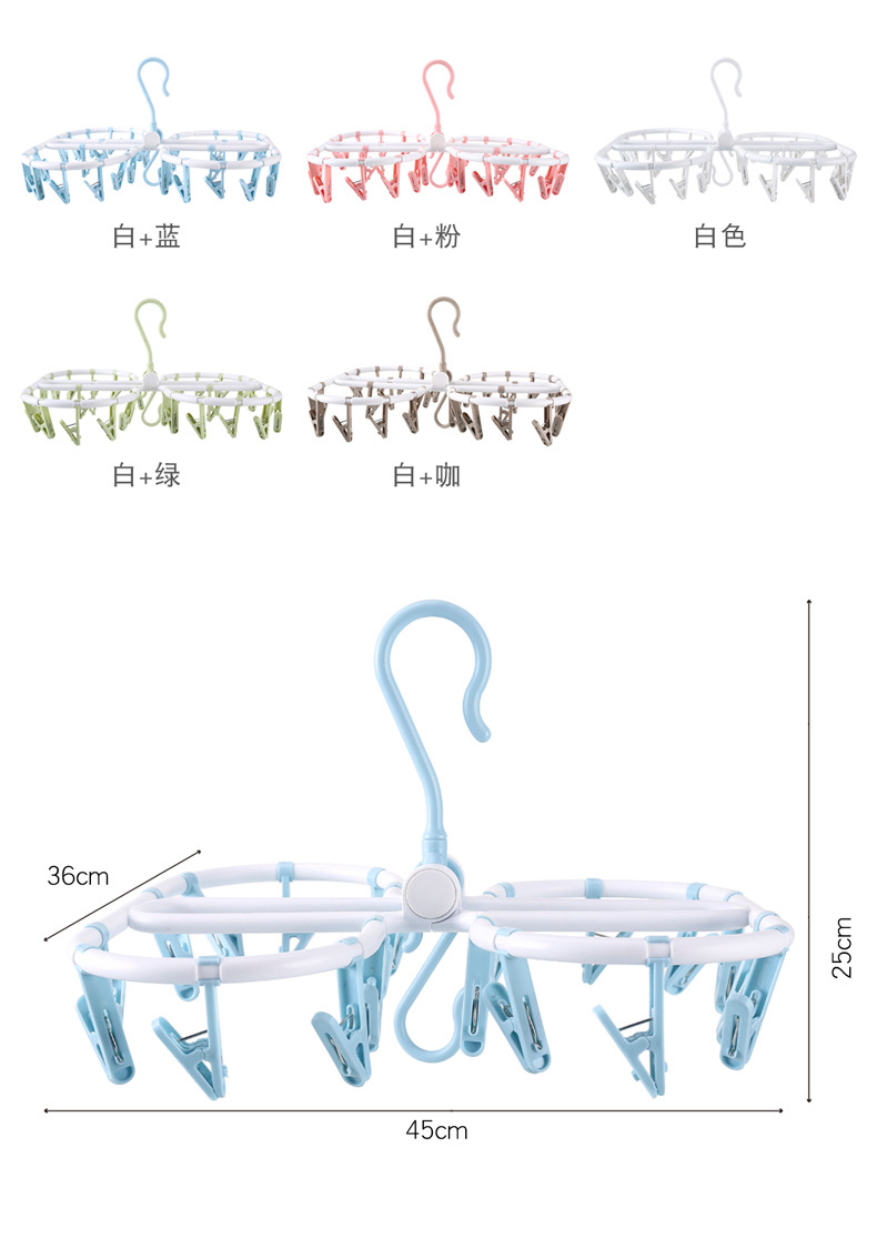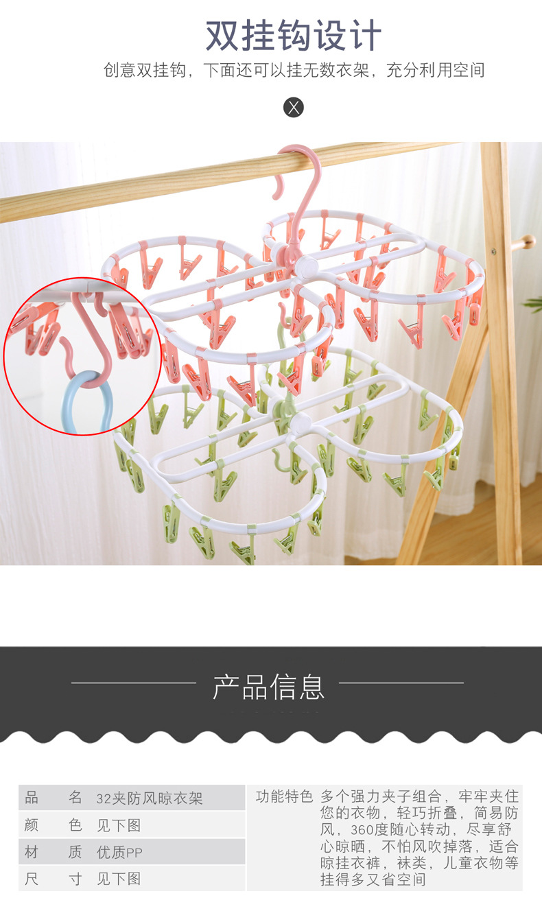 Jane comb 32 clip multifunctional round thick foldable underwear drying rack New PP drying rack manufacturers wholesale