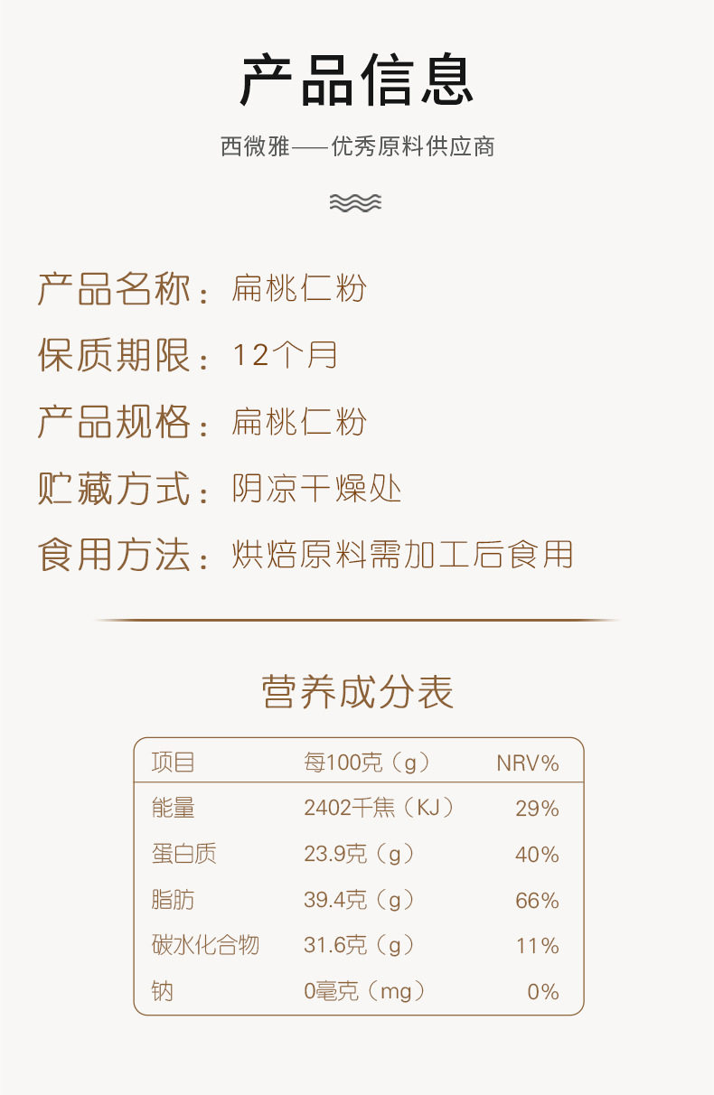 | Raw materials and ingredients | Almond |