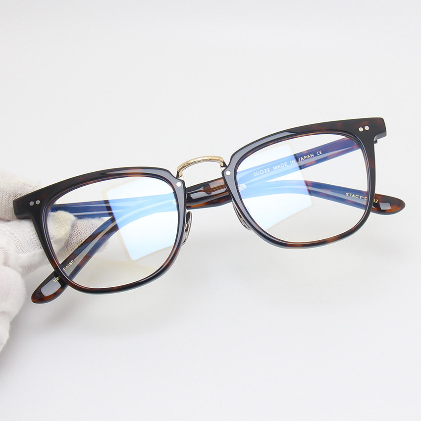 Stacy Square Frame Glasses with Titanium Nose Pads, Trendy Korean Style for Men and Women, Medium Gold Glasses, Optical Frames Made of Acetate