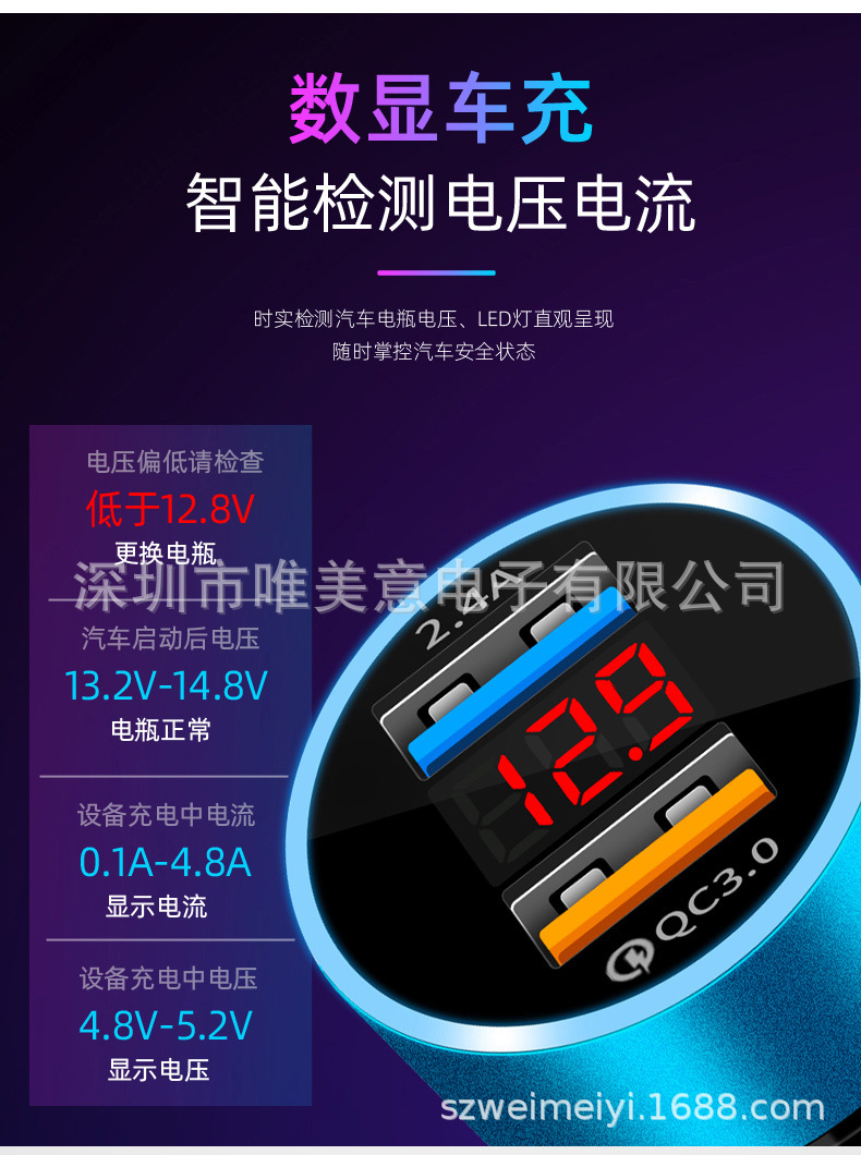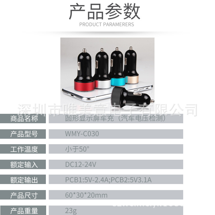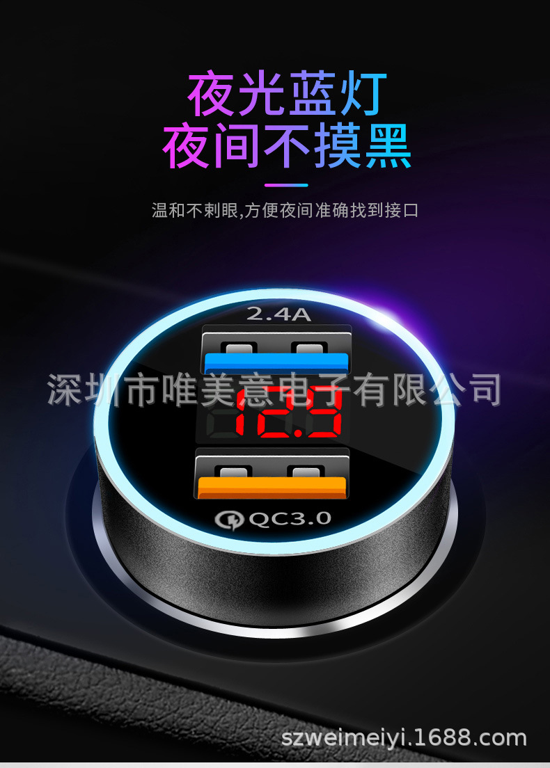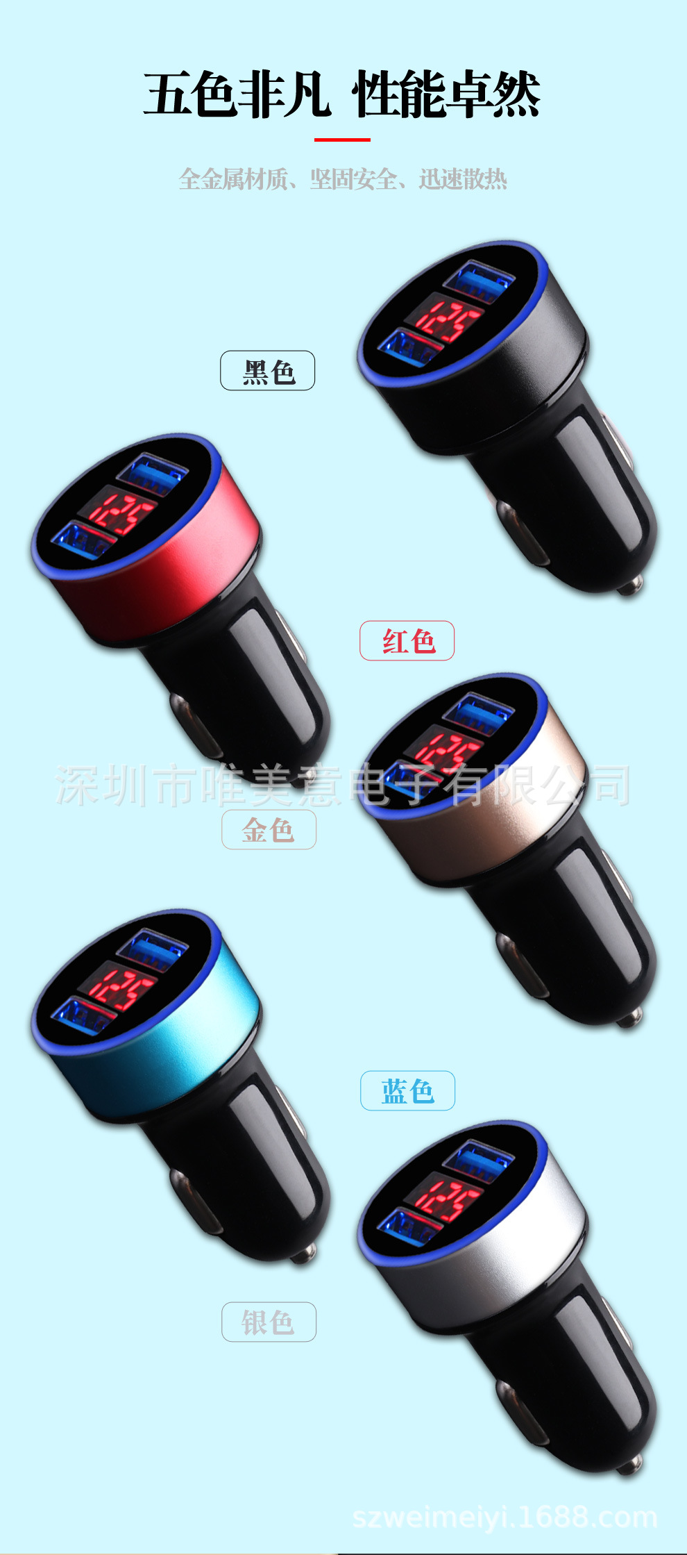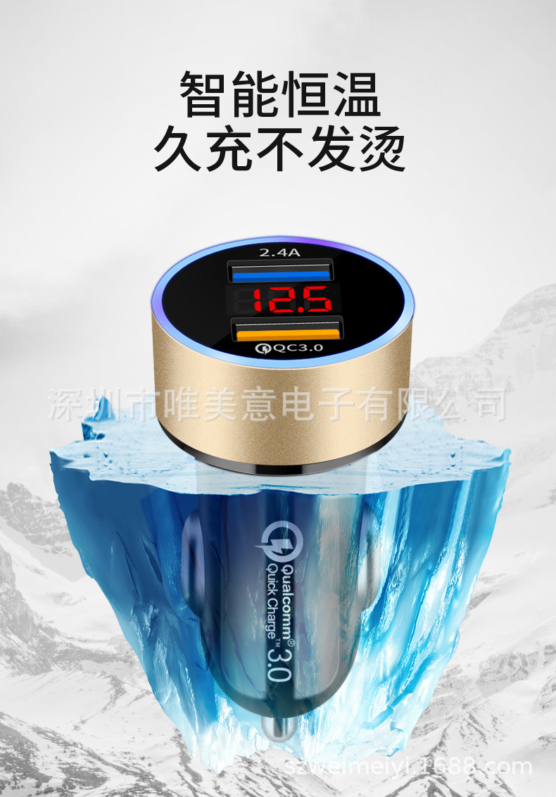 New aluminum ring 5V3.1A display car charging aluminum alloy multifunctional Halo digital display car charger manufacturers