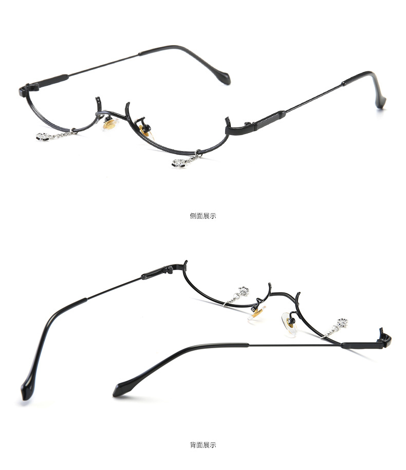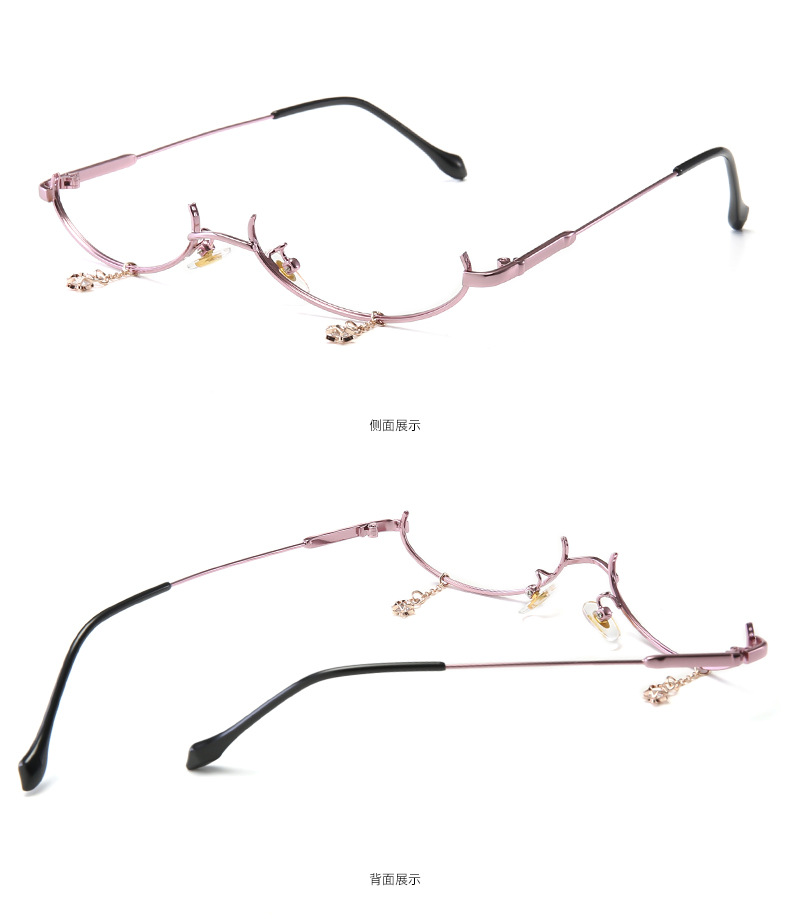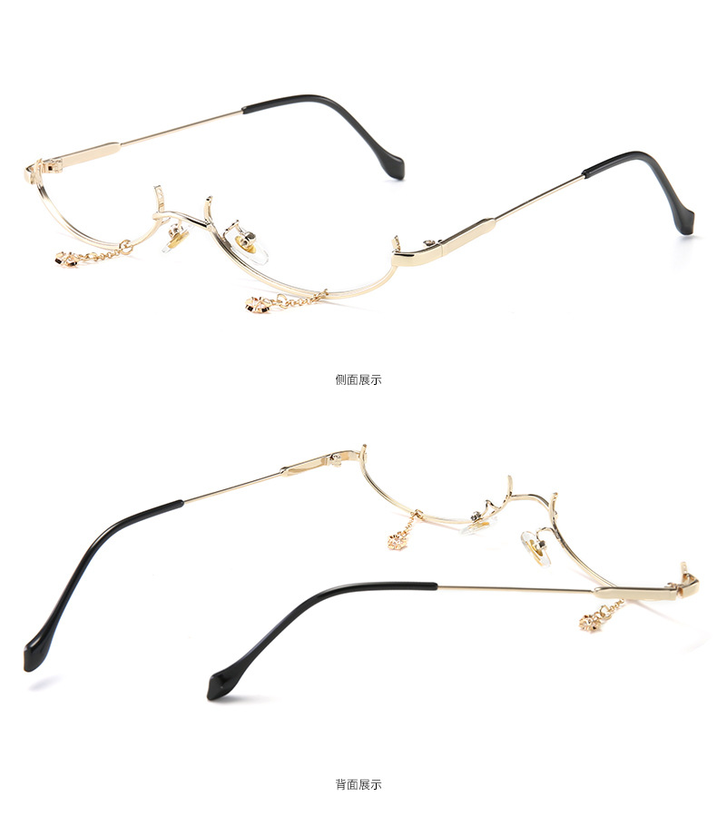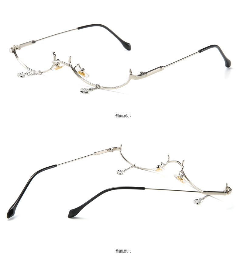 New style decorative mirror no lens metal glasses lower half frame water drop decorative chain pendant glasses frame 2911