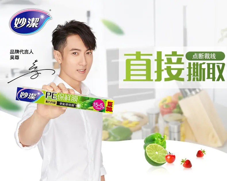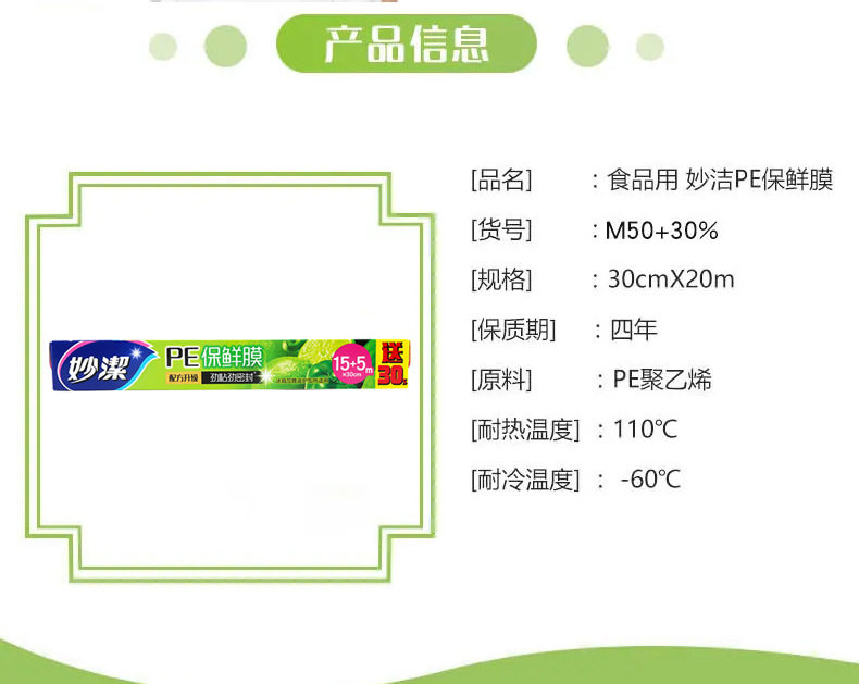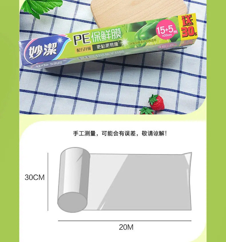 Miaojie plastic wrap 20 m boxed * 30cm with Cutter PE kitchen microwave refrigerator food preservation postage