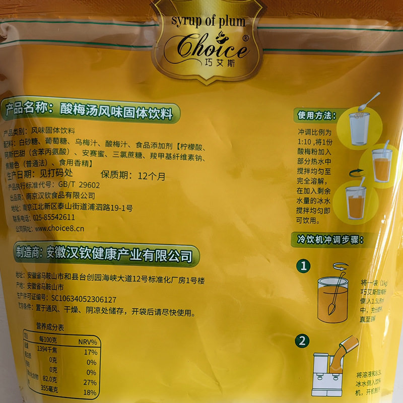 Qiaoaisi sour plum soup powder 1KG instant sour plum soup powder sour plum juice sour plum soup commercial juice beverage powder