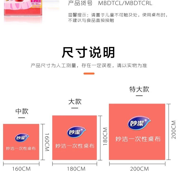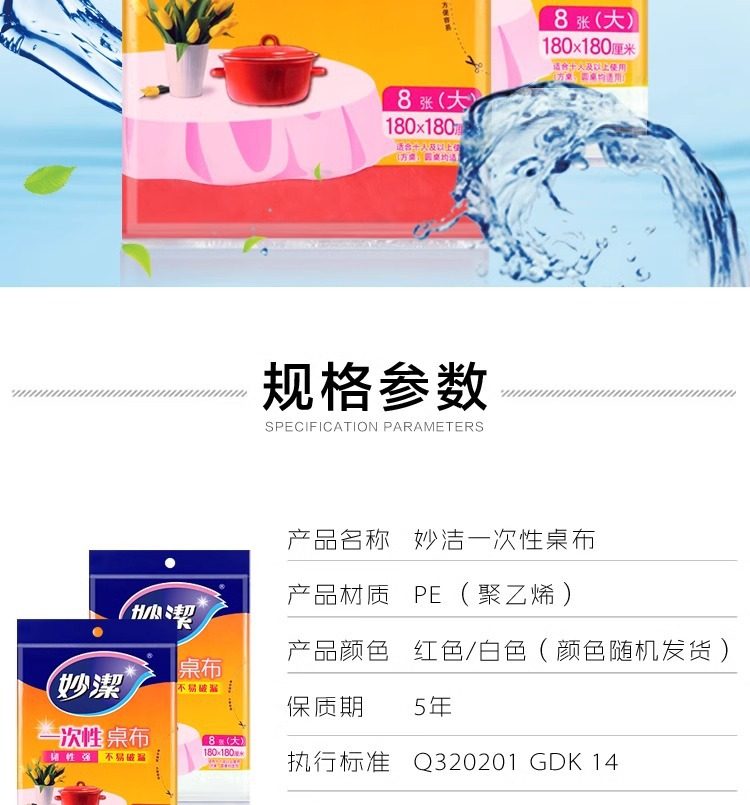 Miaojie Disposable Tablecloth Medium Size 160*160cm 10 Large Size 180*180cm8 Desktop