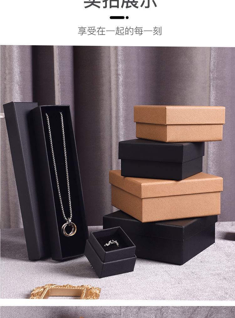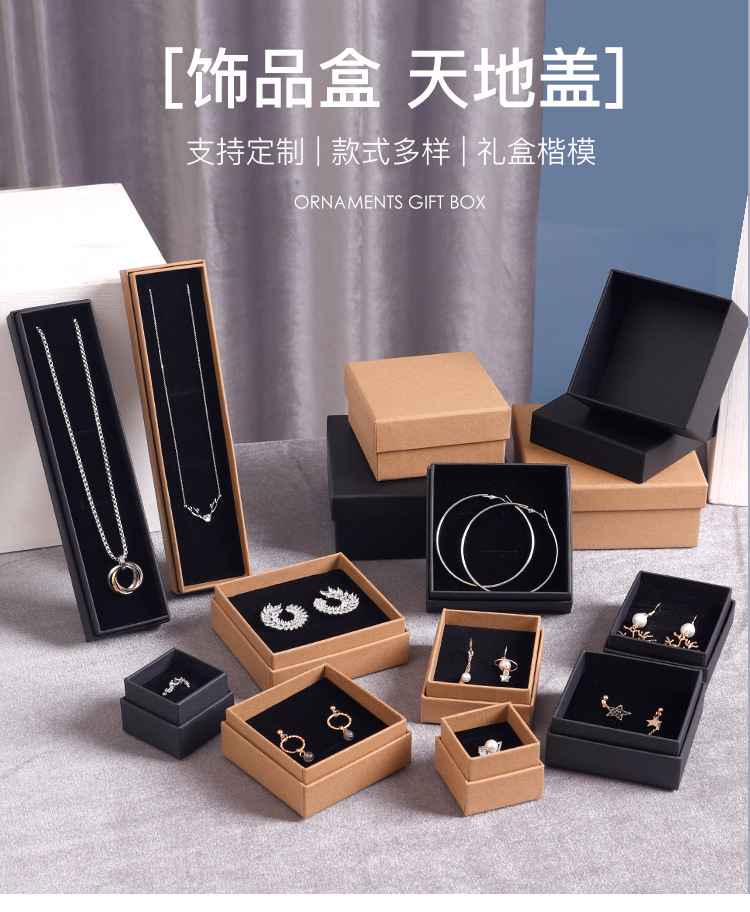 Wholesale vintage kraft paper jewelry box heaven and earth cover black jewelry box ring jewelry box necklace box in stock