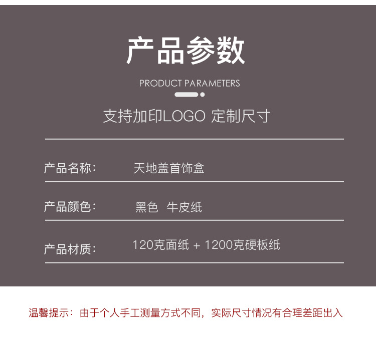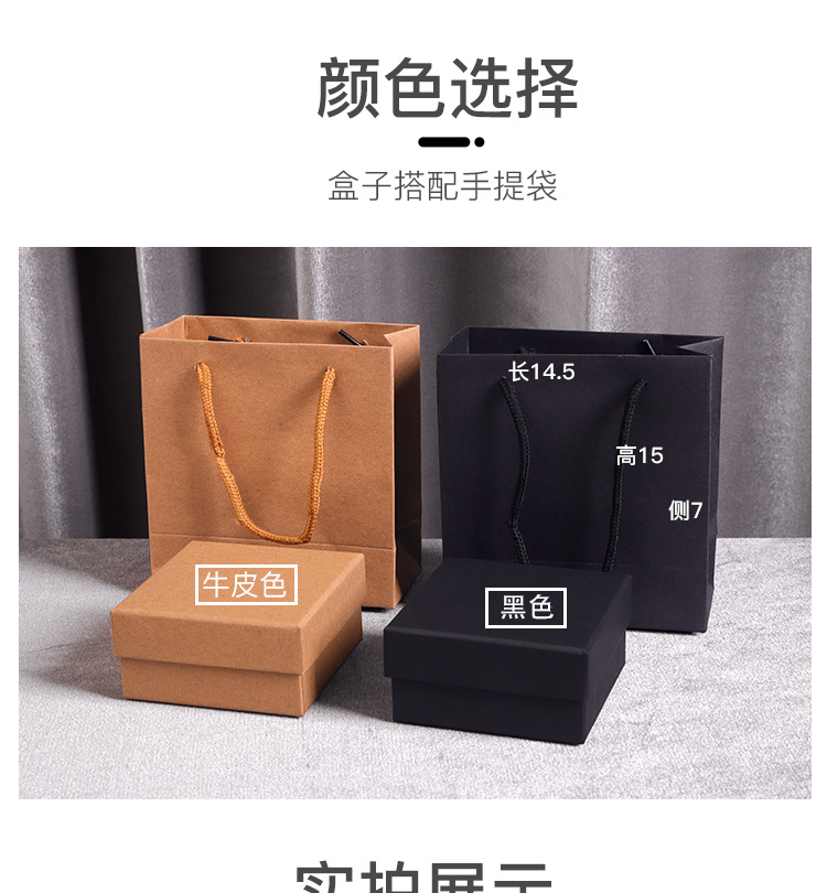 | Specifications and models | Black;5*5*4cm,Black;8.3*8.3*3.5cm,Black;9*7*3cm,Black;10*10*3.5cm,Black;22.5*5.5*3cm,Black; 10*10*5cm empty box,Black; 13*13*5.5cm empty box,Black; handbag length 14.5* measurement 7* height 15cm,Kraft paper color;5*5*4cm,Kraft paper color;8.3*8.3*3.5cm,Kraft paper color;9*7*3cm,Kraft paper color;10*10*3.5cm,Kraft paper color;22.5*5.5*3cm,Kraft paper color; 10*10*5cm empty box,Kraft paper color; 13*13*5.5cm empty box,Kraft paper color; handbag length 14.5* measurement 7* height 15cm |