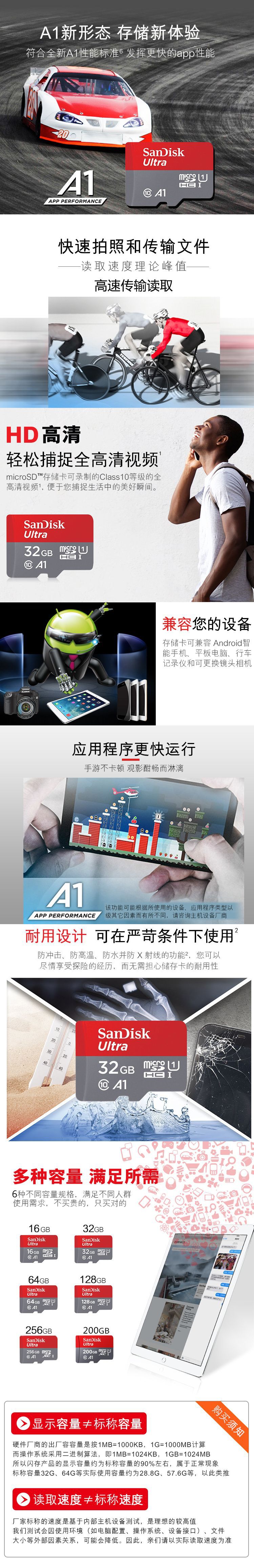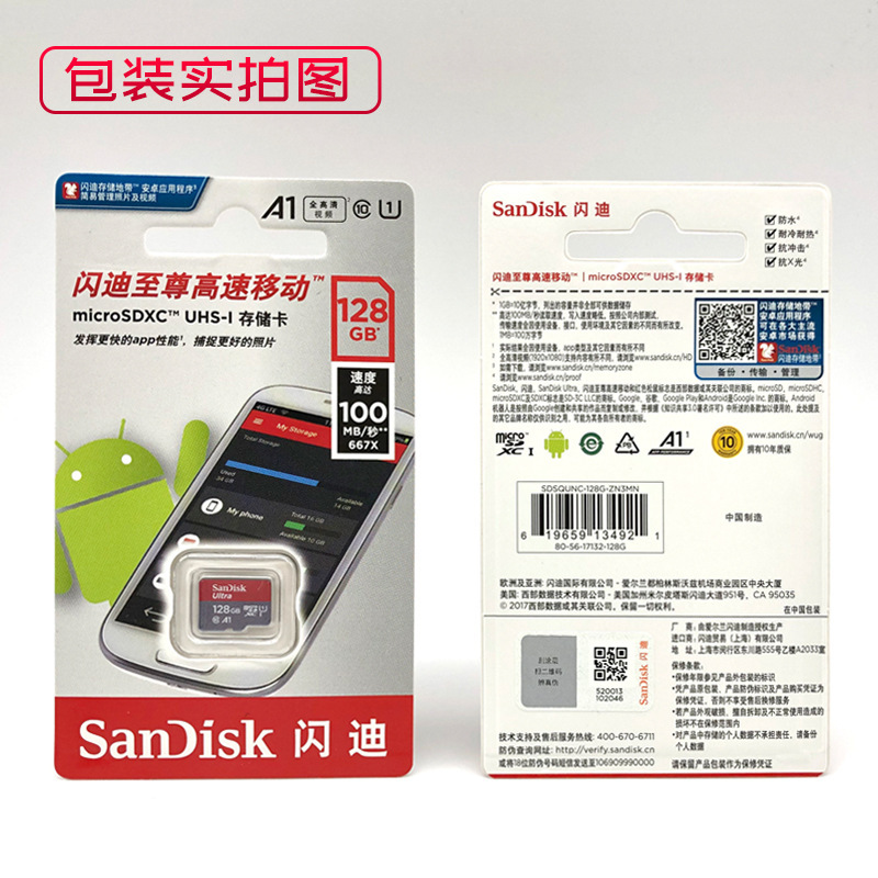 Sandisk Genuine Memory Card Is Suitable for A1 High-Speed Tf16G 32g 64G128G Recorder Monitoring Memory Card C10