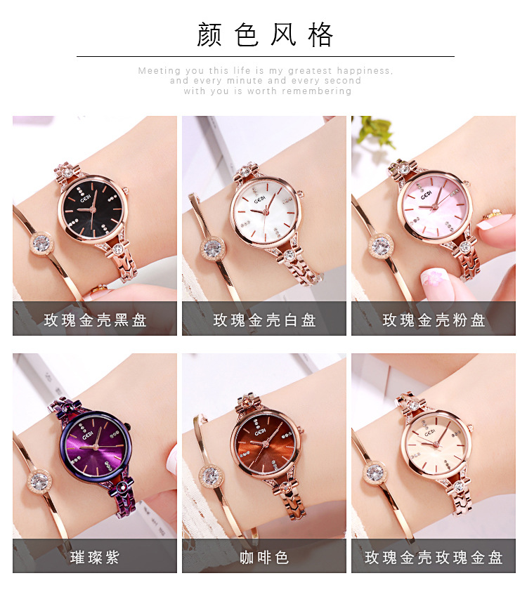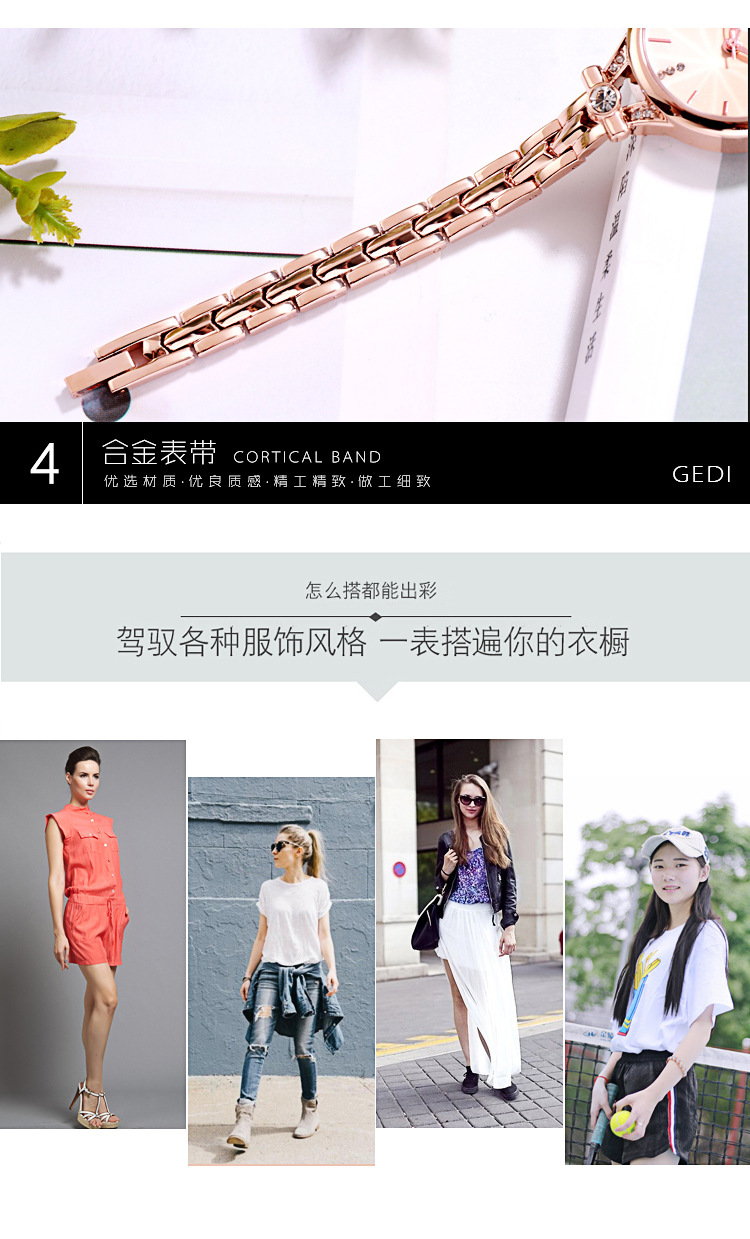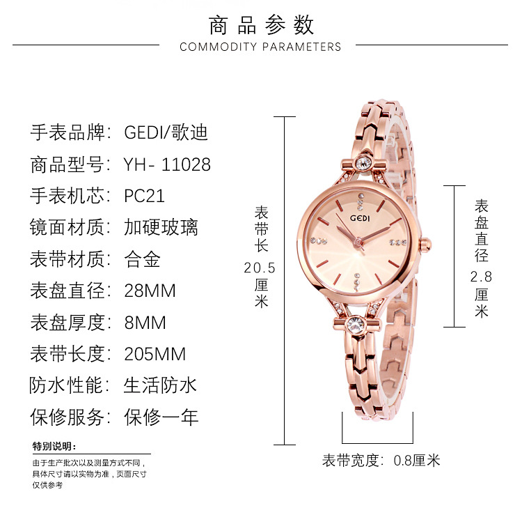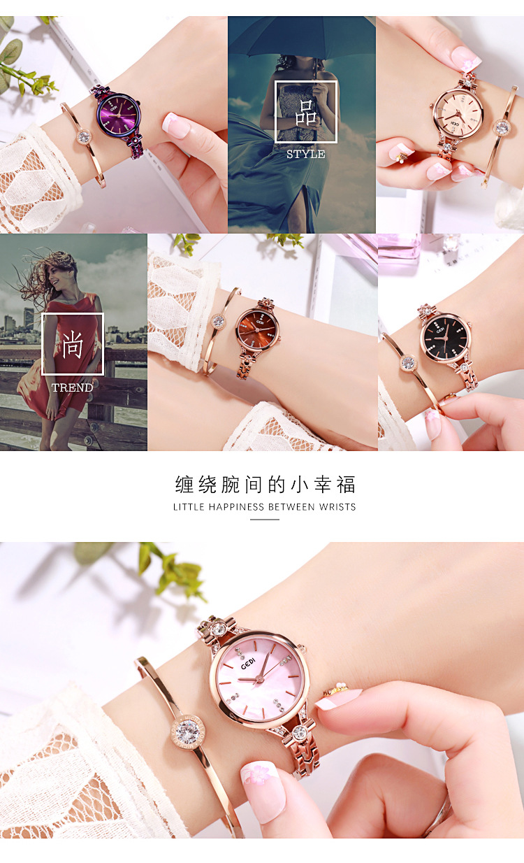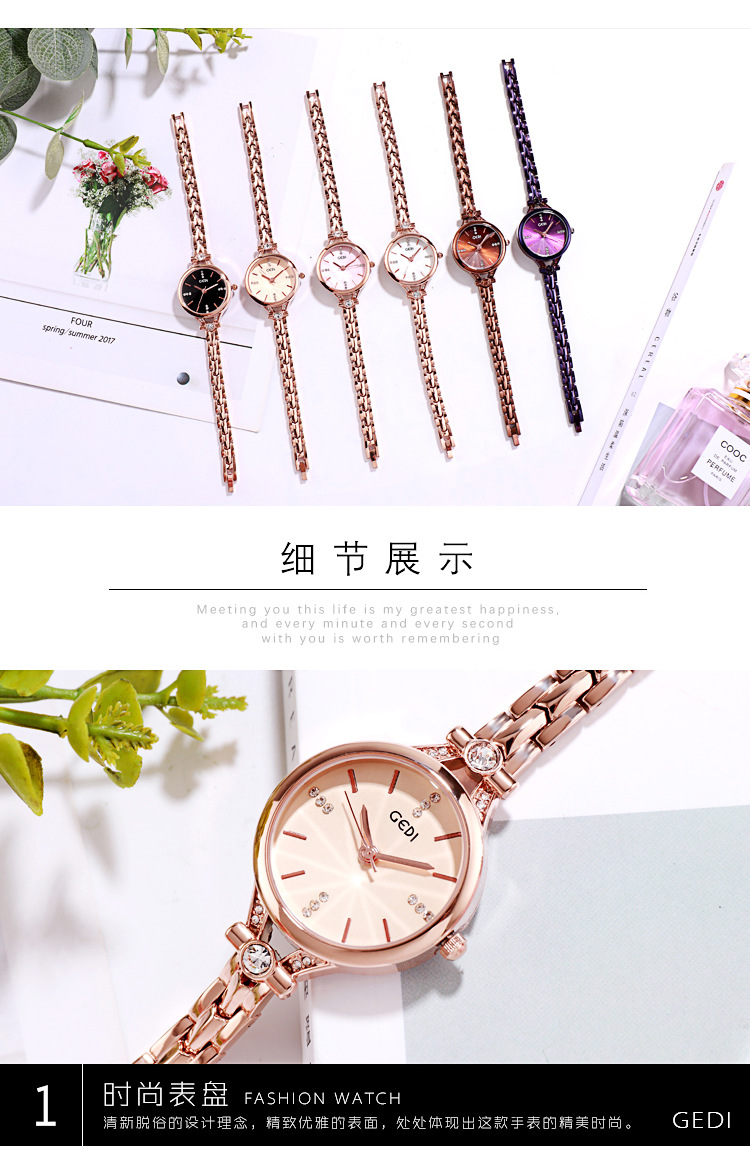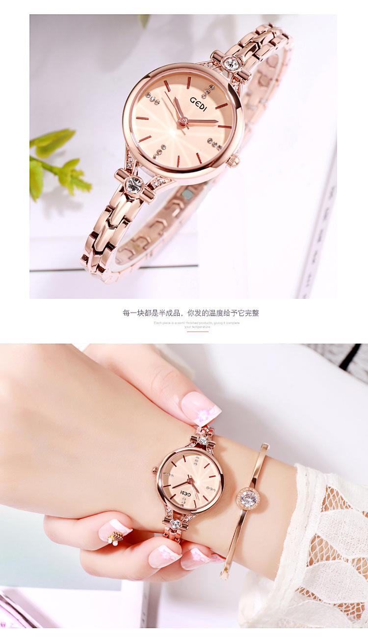 Goldie GEDI Fashion Waterproof Large Dial Steel Band Women's Watch Student Simple Diamond-encrusted Fine Strap Watch British Style