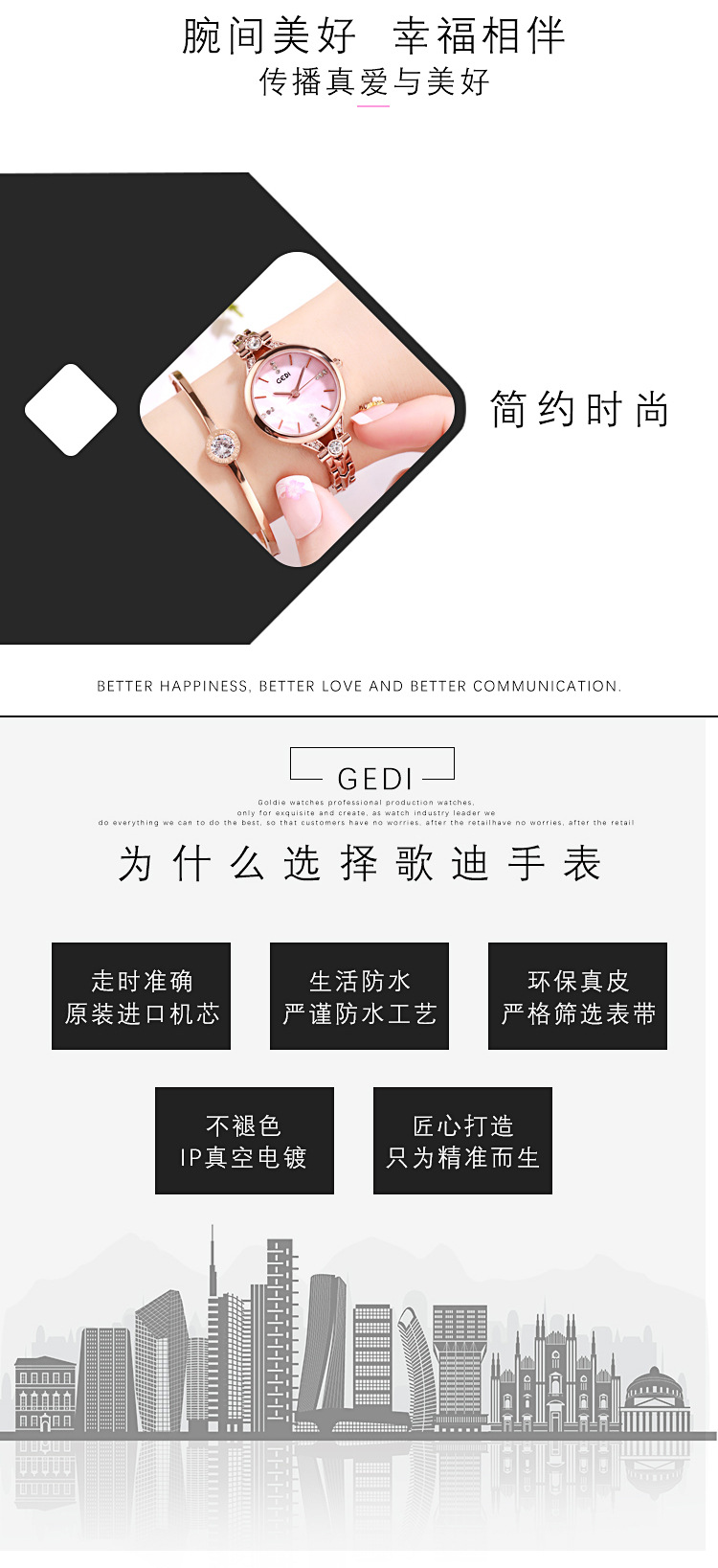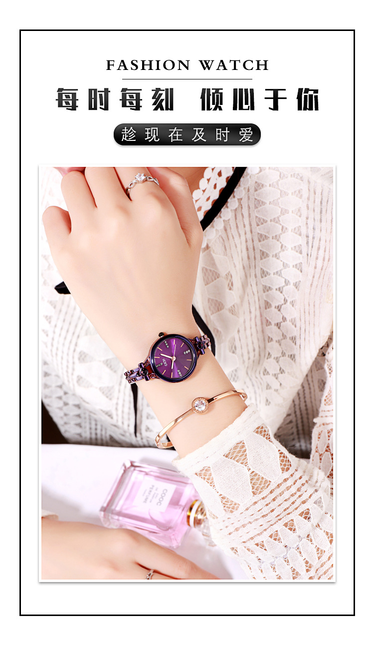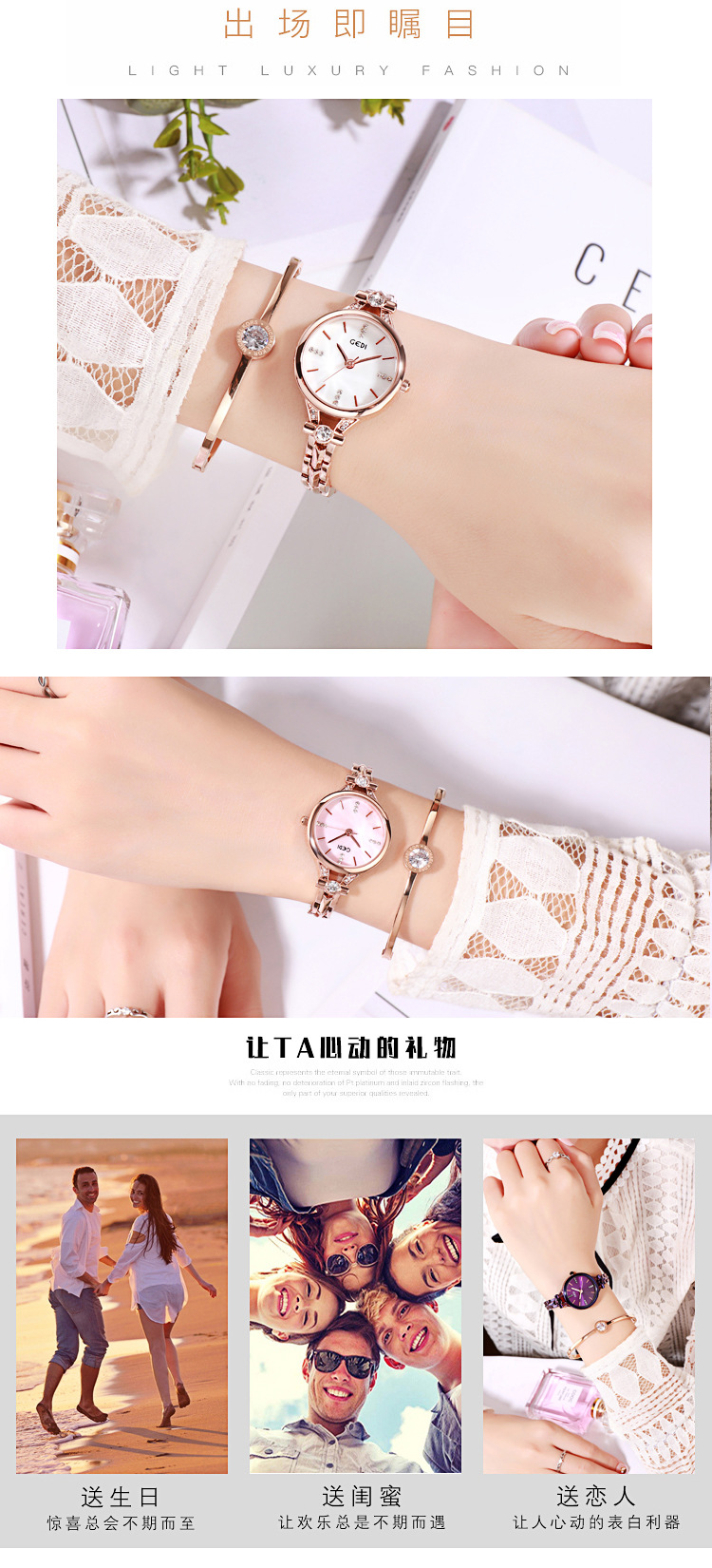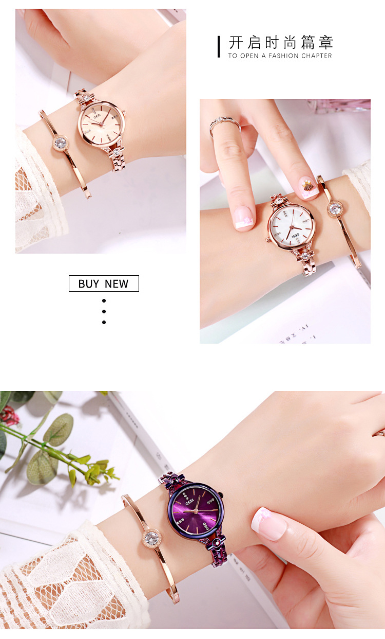 Goldie GEDI Fashion Waterproof Large Dial Steel Band Women's Watch Student Simple Diamond-encrusted Fine Strap Watch British Style
