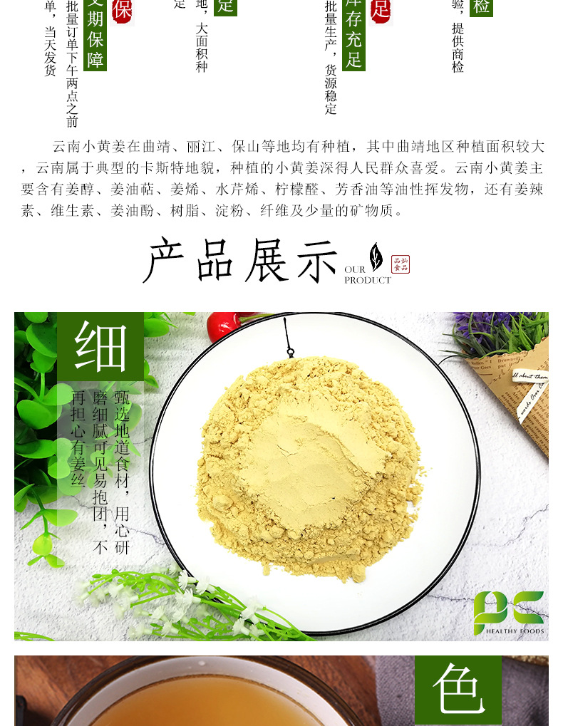 | Raw materials and ingredients | Little yellow ginger |