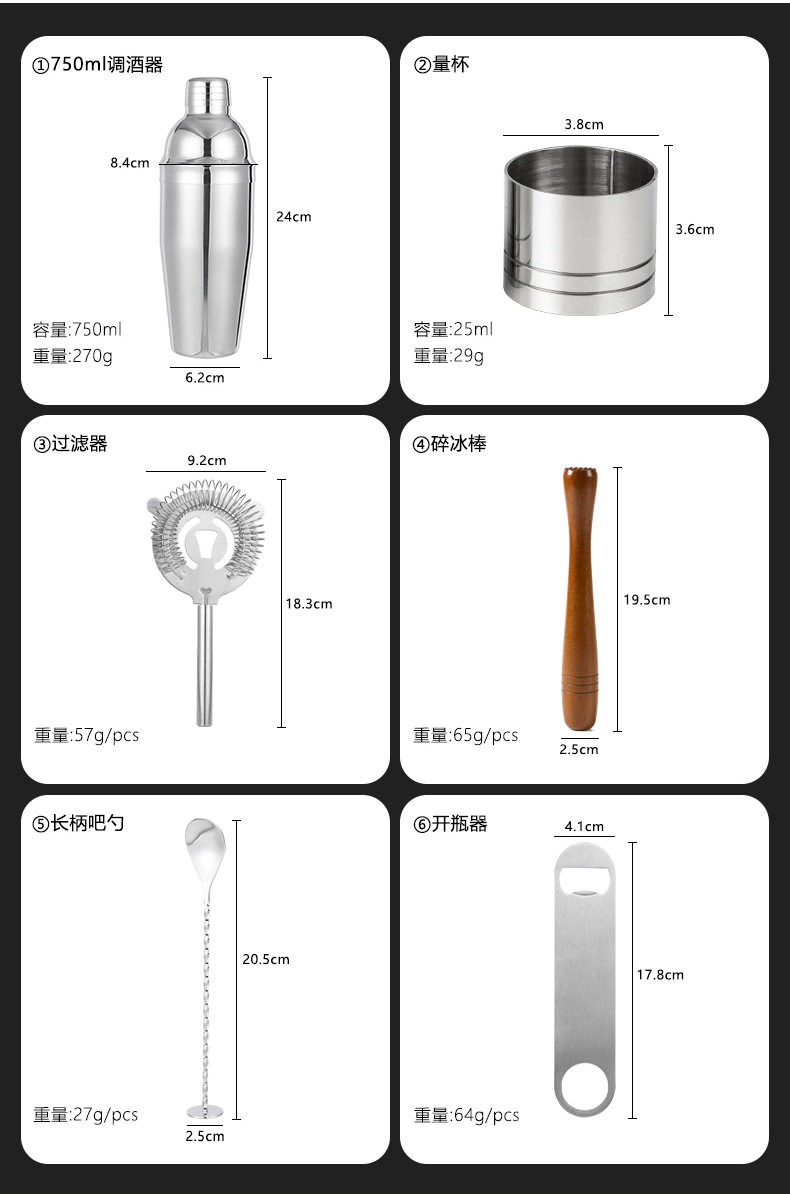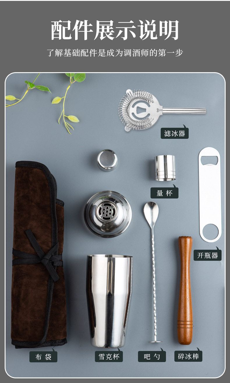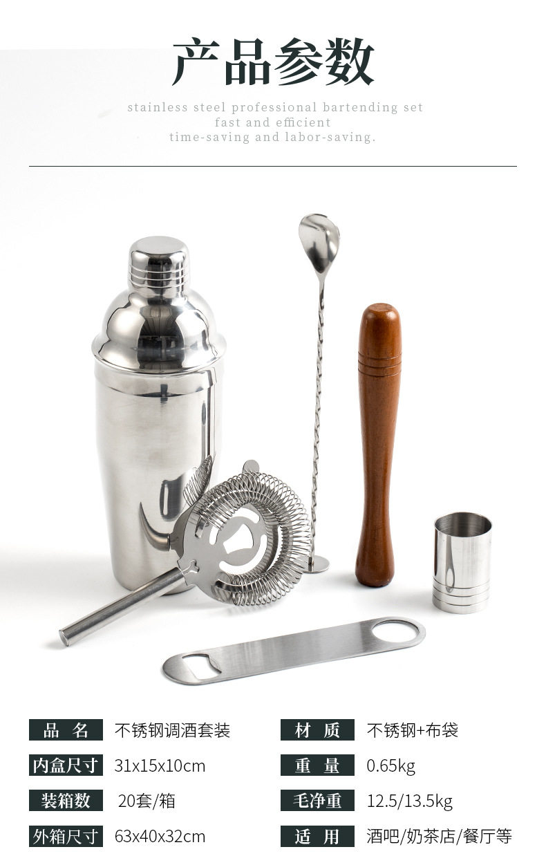 Shake Cup Cross-Border Direct Supply Cocktail Shaker Set 7-Piece Cocktail Shaker Tool Mixing Tool Set