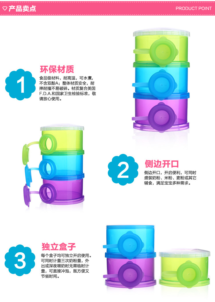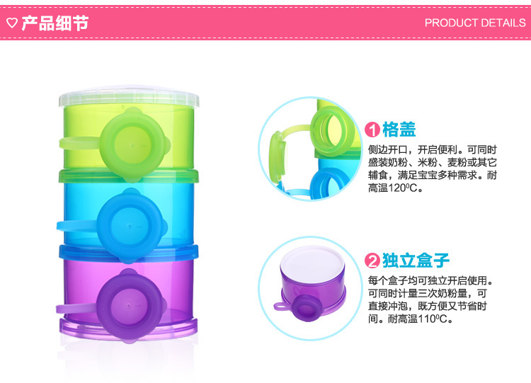 Baby milk powder box portable storage baby outing supplies can milk powder grid packing box three-layer large capacity