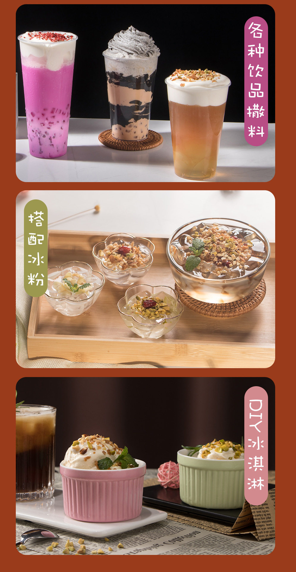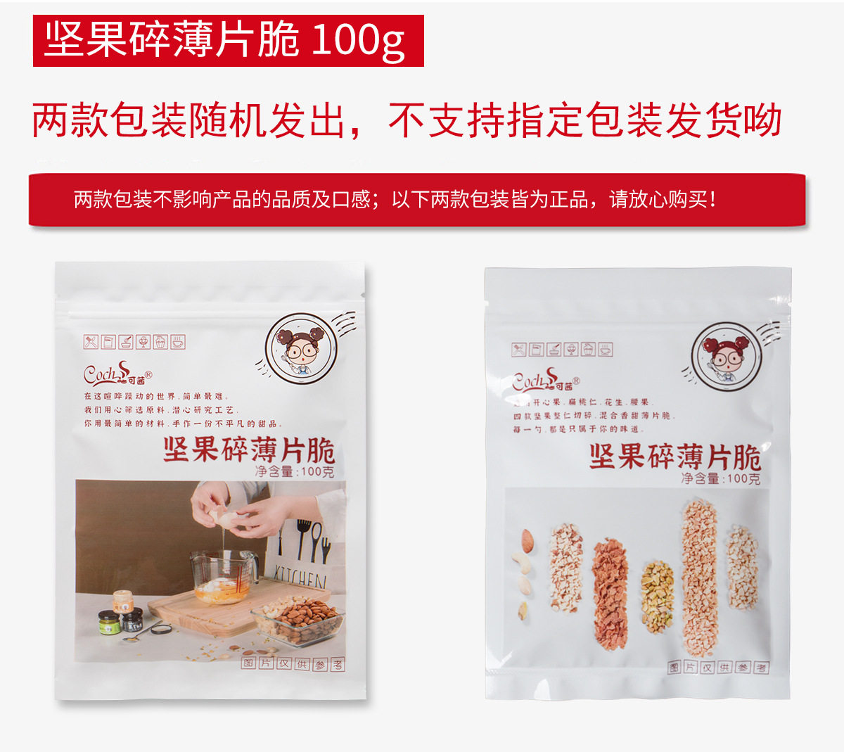 Raw materials and ingredients Peanuts are crushed, the slices are crunchy, the almonds are crushed, the cashew nuts are crushed, and the pistachios are crushed (nuts and their nut products, peanuts and their products, grains containing gluten and their production
