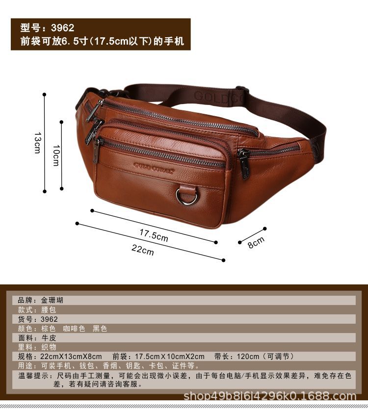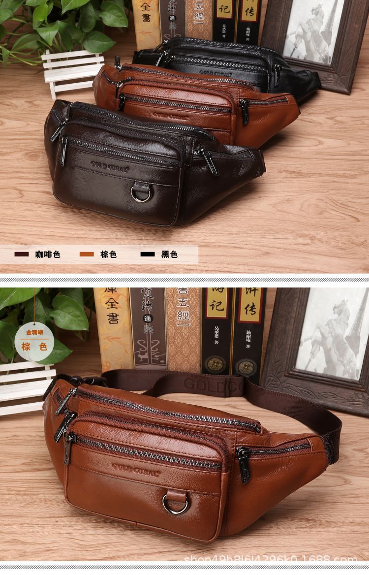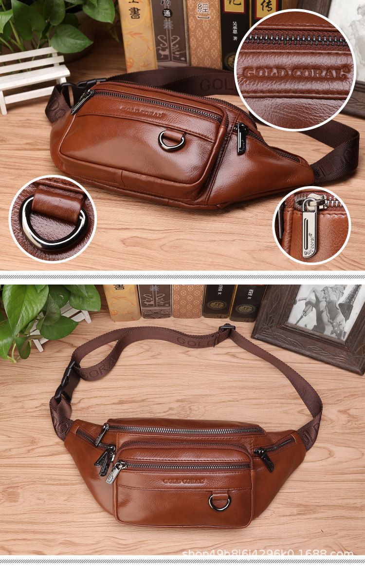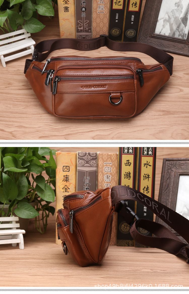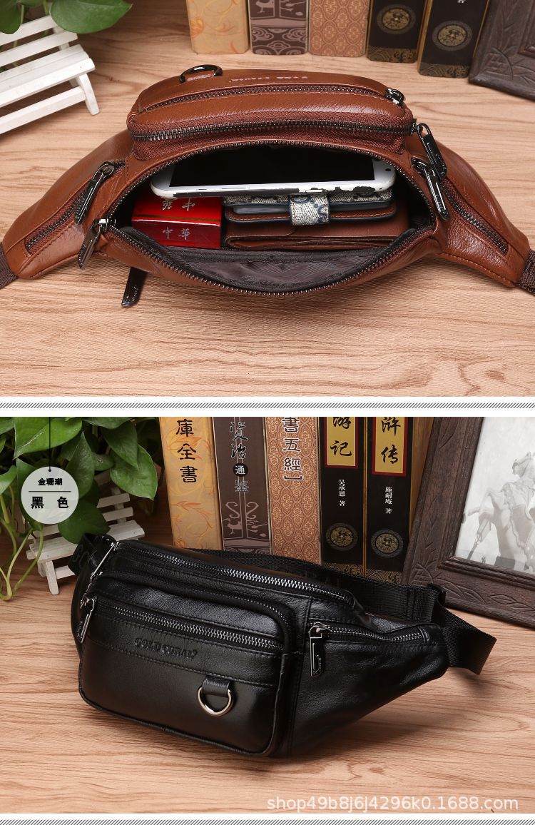 Cross-Border Waist Bag Men's Genuine Leather Cowhide Multi-Functional Men's Bag Sports Dumpling-Shaped Mobile Phone Waist Bag Cashier Large Capacity New Bag