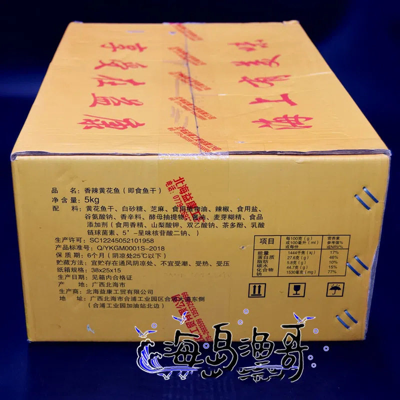 | Raw materials and ingredients | Dried yellow croaker, white sugar, sesame, edible vegetable oil, chili, salt, monosodium glutamate, spices, edible essence, food additives (potassium sorbate) |