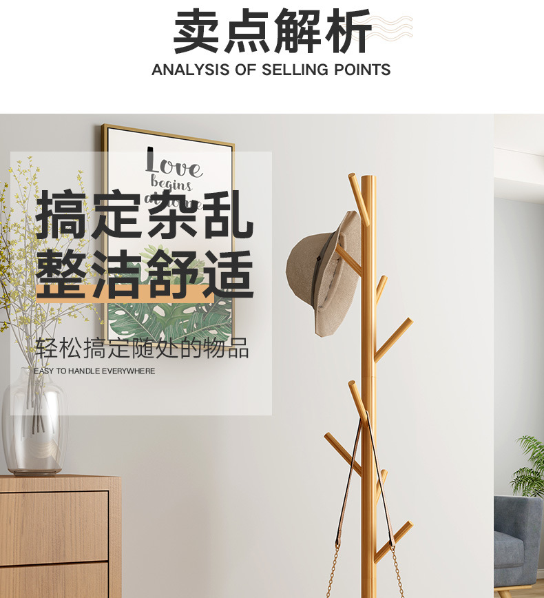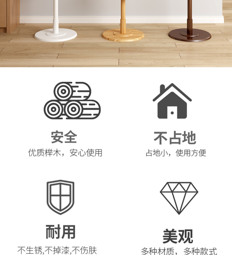 Fulin Kai Tak European Style Solid Wood Coat Rack Creative Disc Bottom Bedroom Living Room Floor Hanger Clothes Hanger