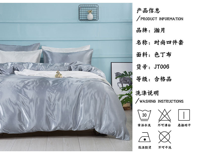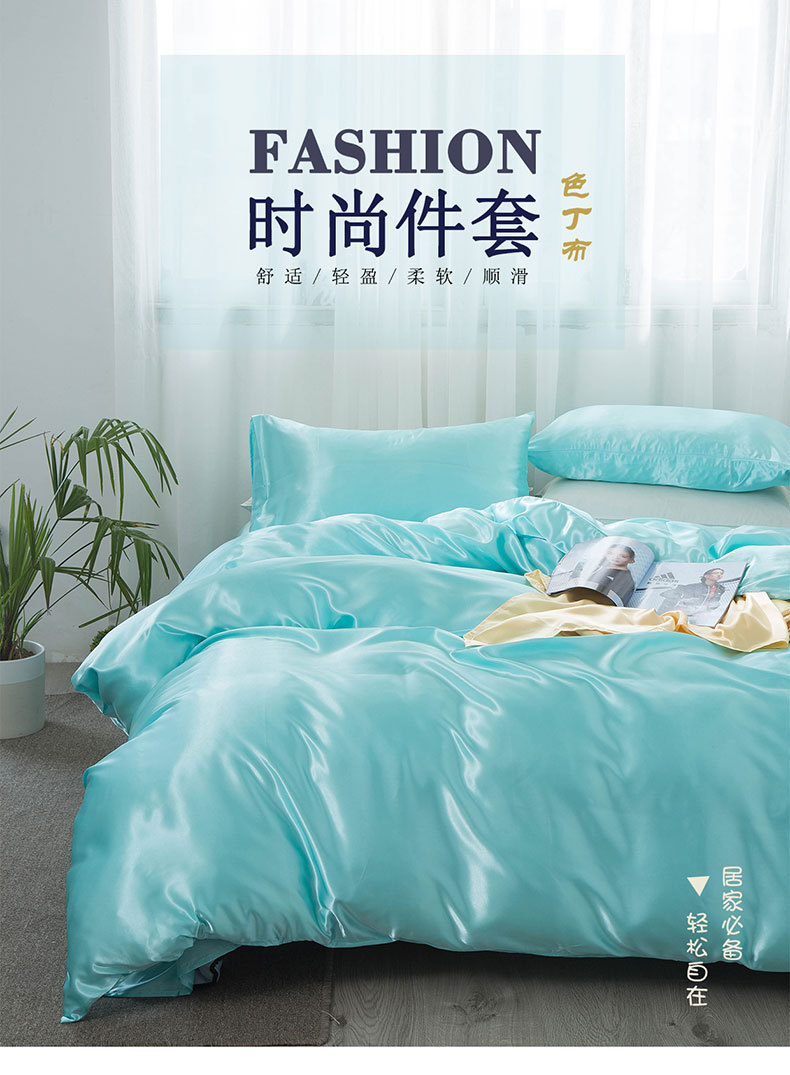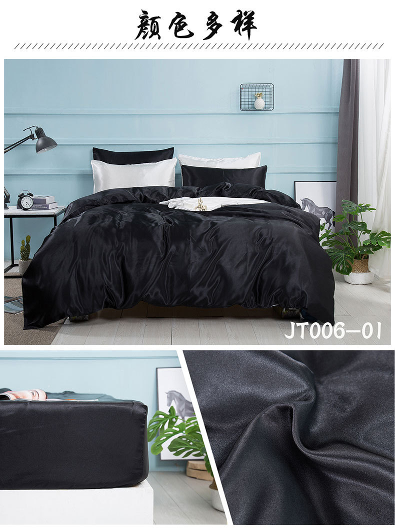 wish Amazon ebay imitation silk satin bedding three four-piece ice silk quilt cover summer pillowcase sheets
