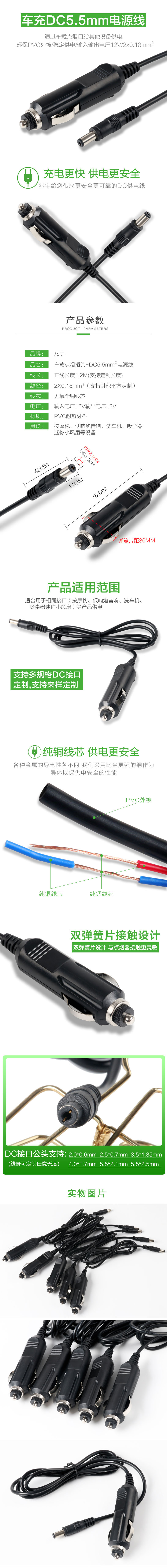 Spot wholesale massage pillow car pump 12V car charger 5521 male with line car charger