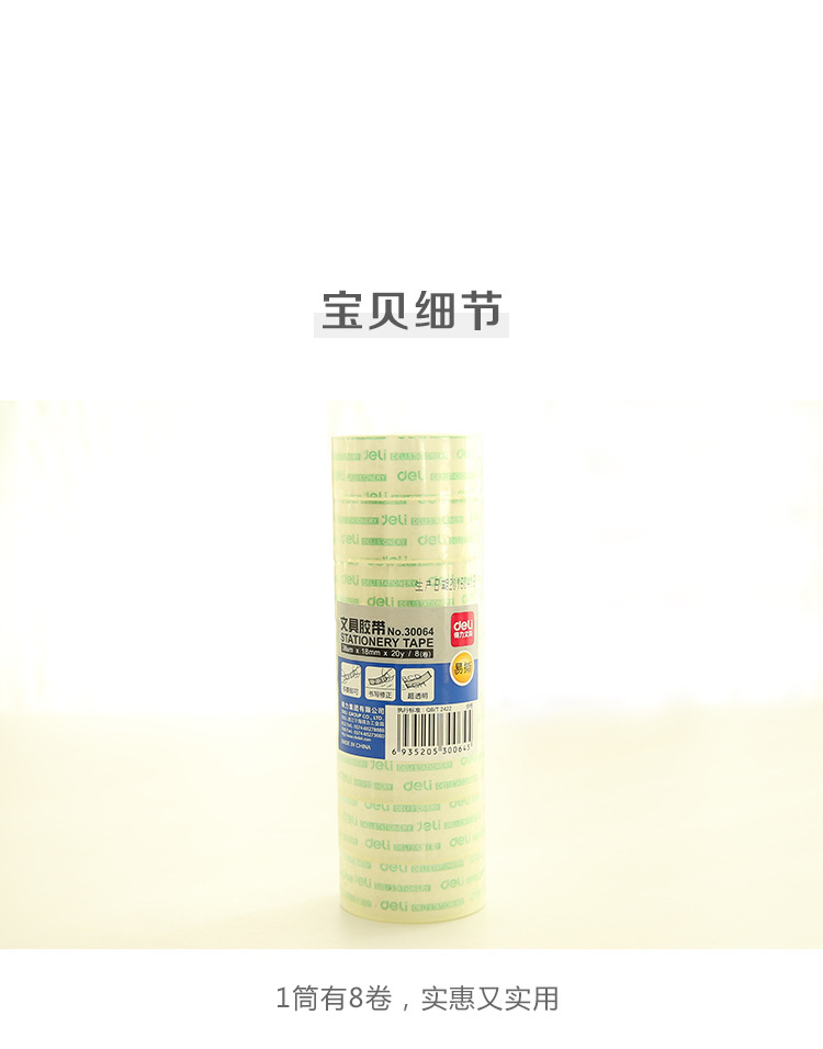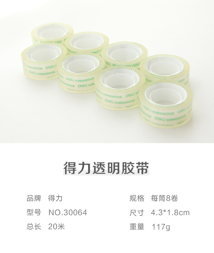 Deli 30064 stationery transparent tape 8 rolls 18mmX20y sticky strong thin tape small roll stationery small tape