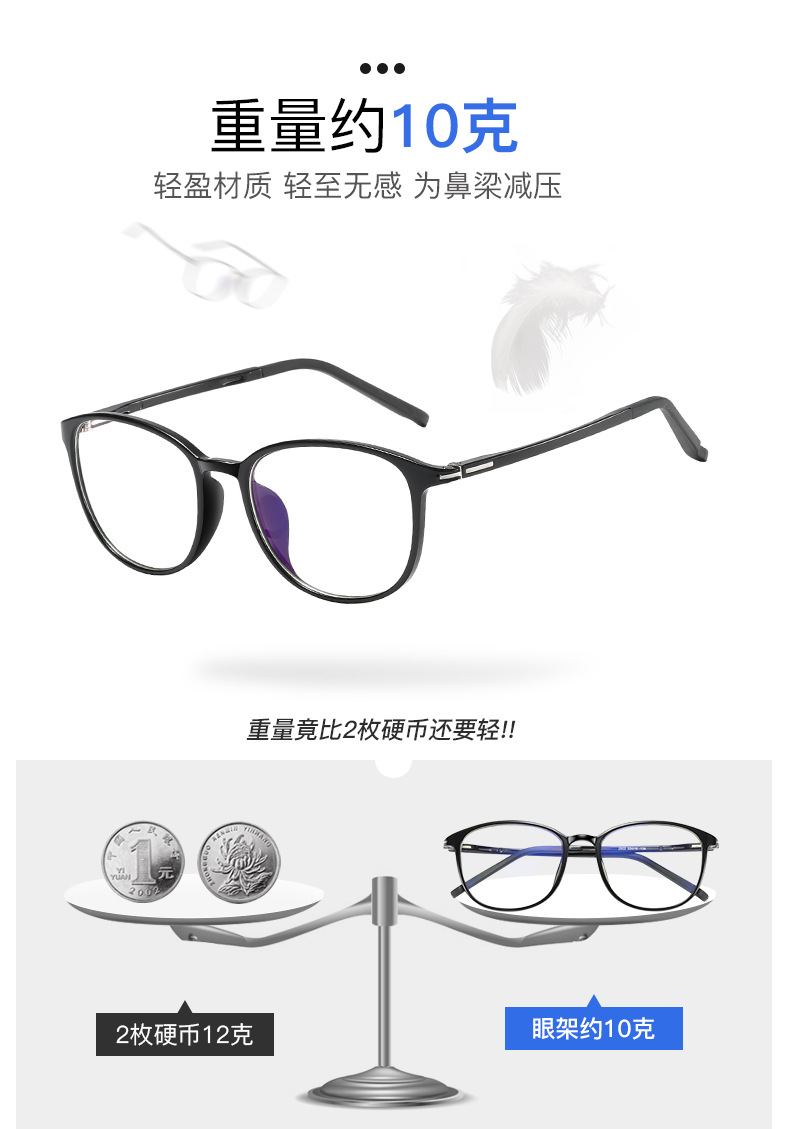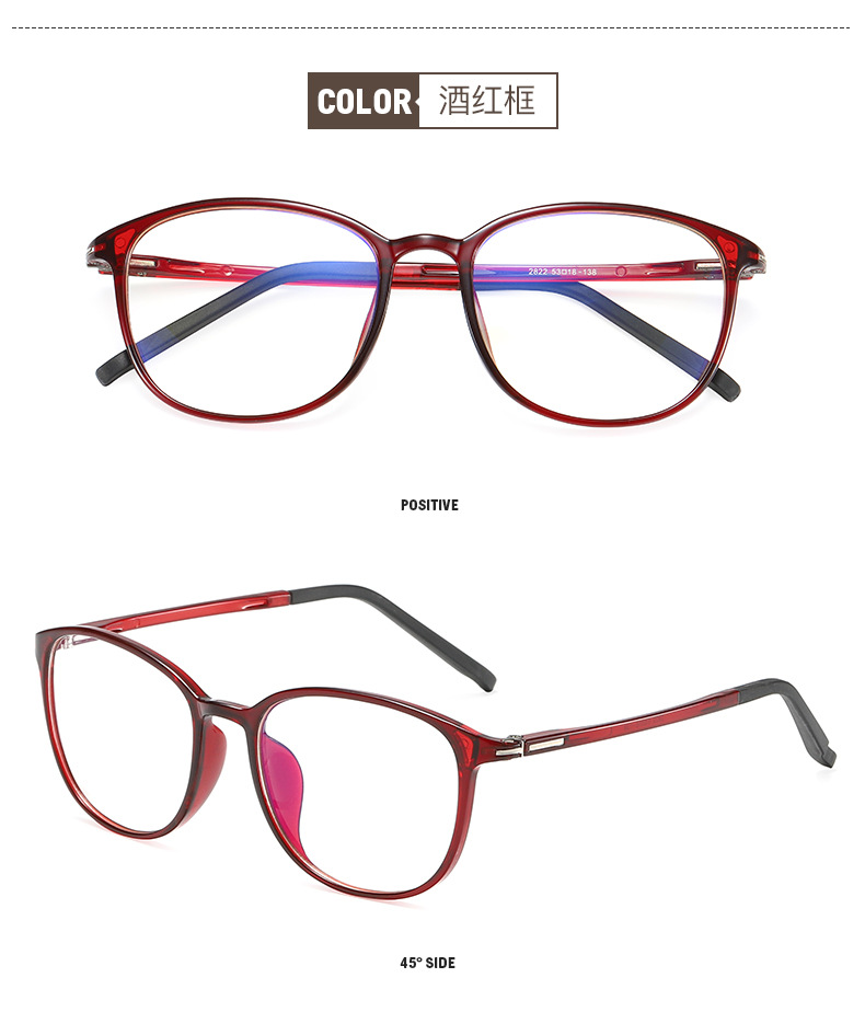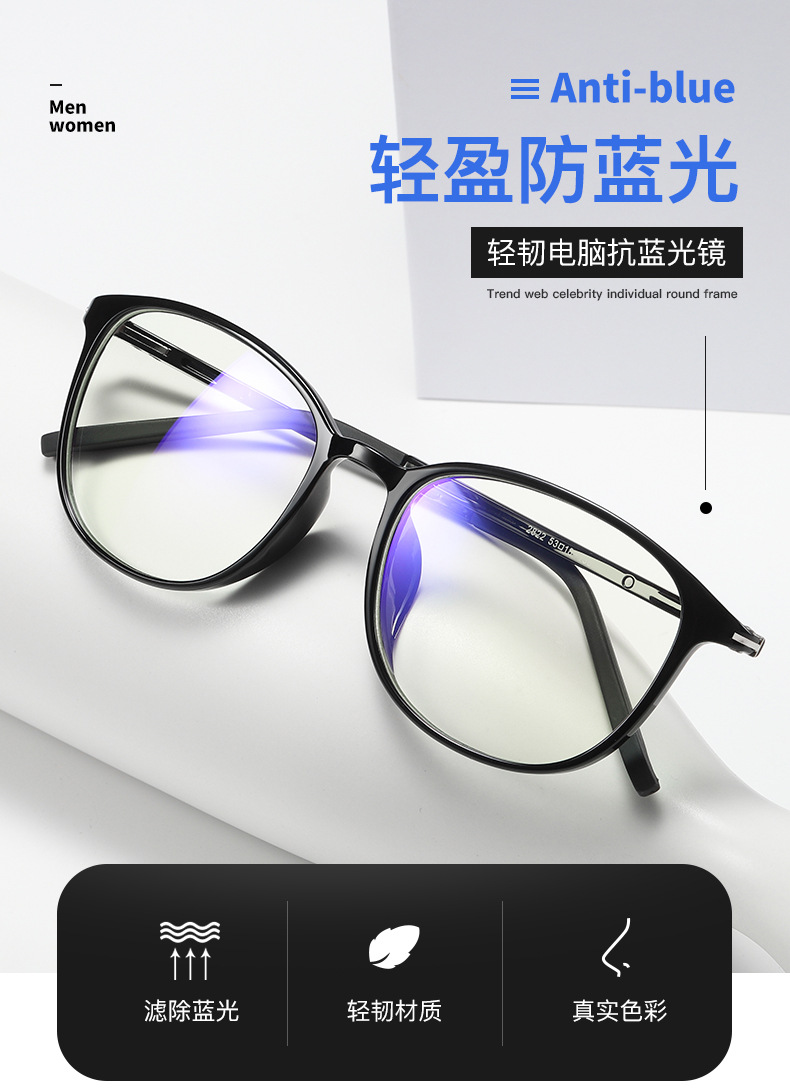 Anti-blue light anti-radiation computer glasses flat glasses frame retro round frame personalized eye protection myopia glasses women's 2822