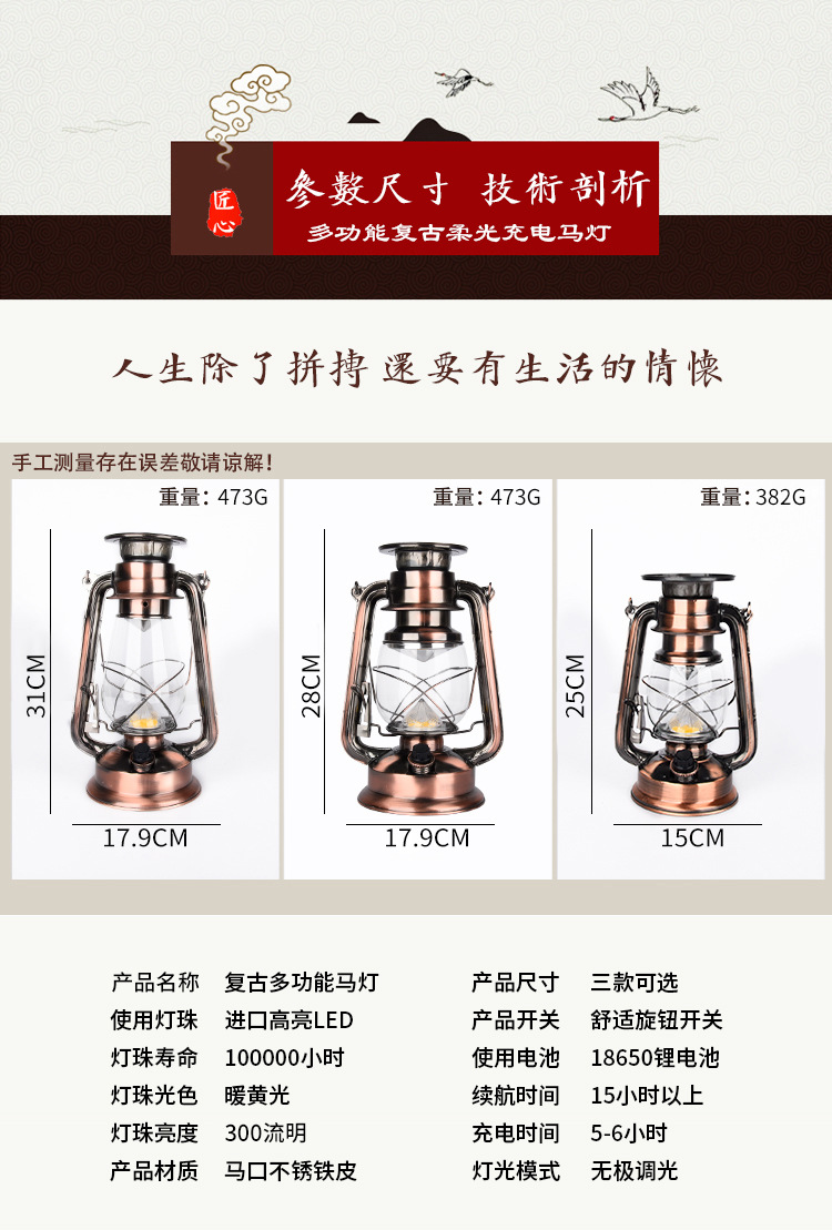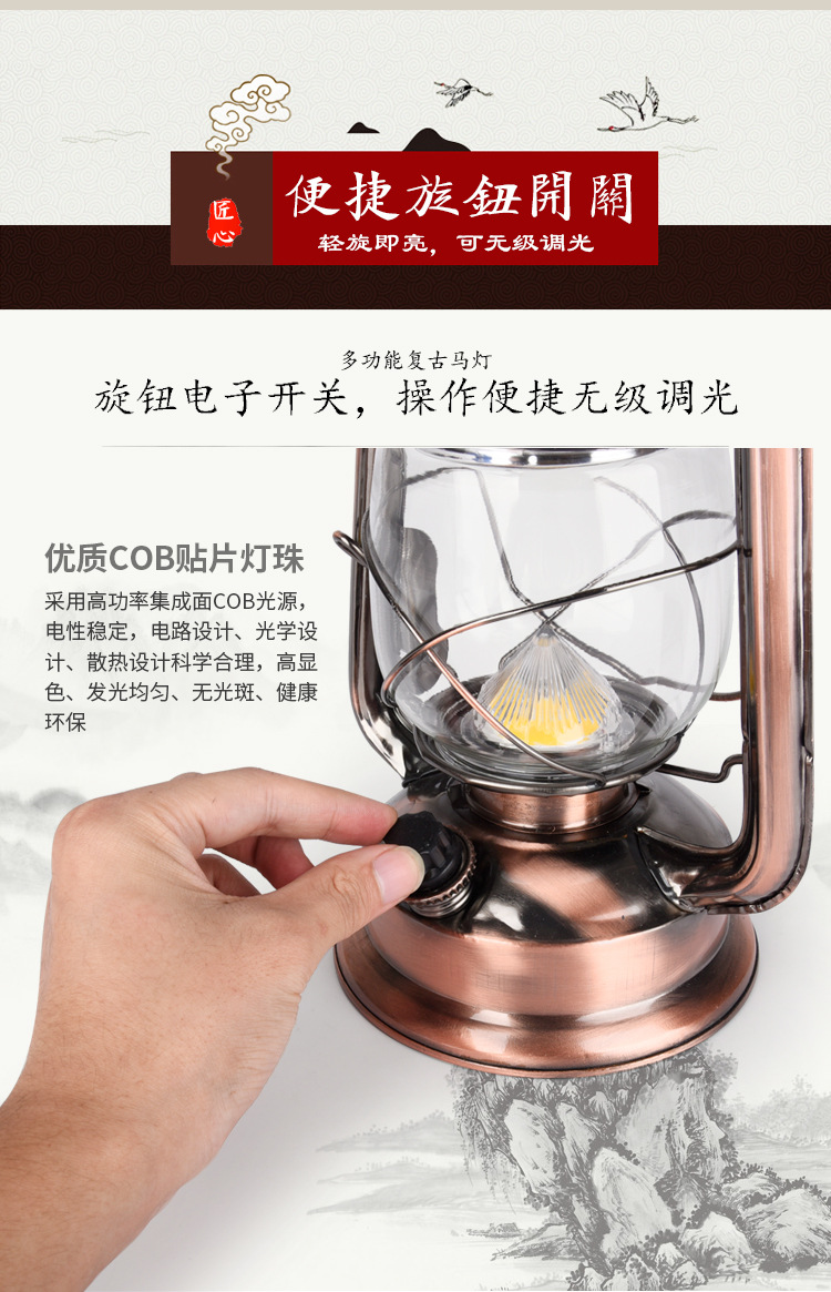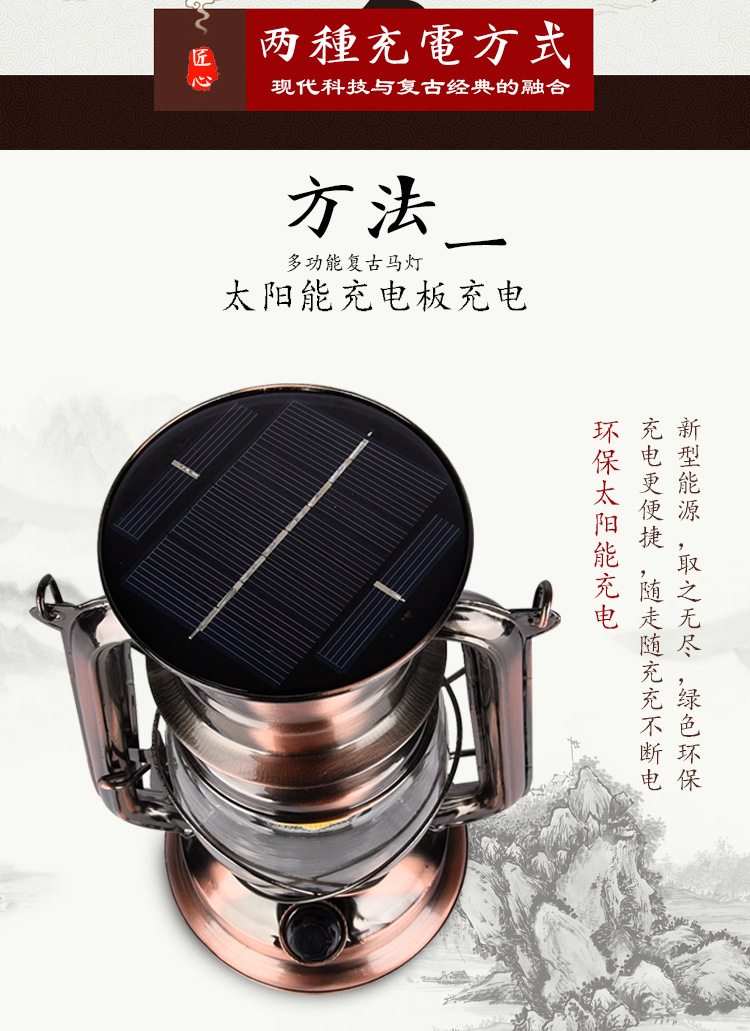 Lantern Solar Rechargeable multifunctional outdoor lighting emergency camping tent lamp retro kerosene lamp portable lamp