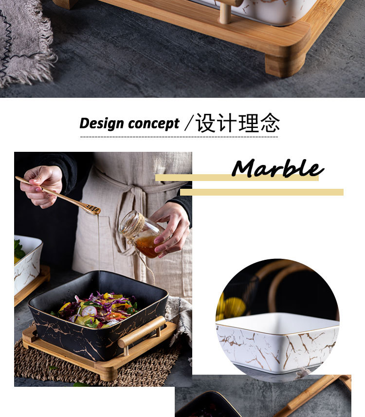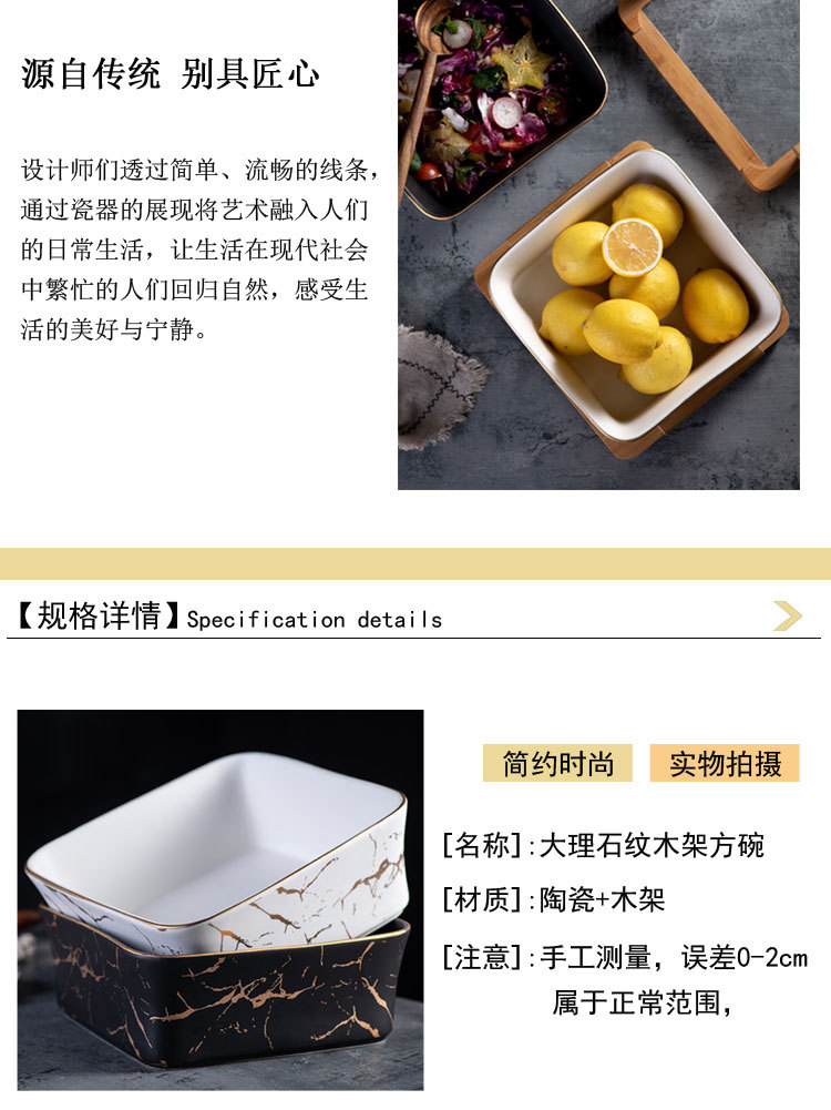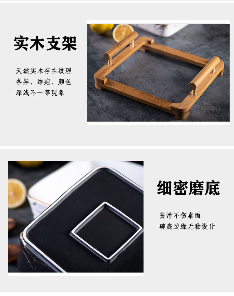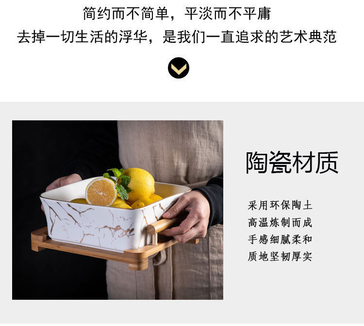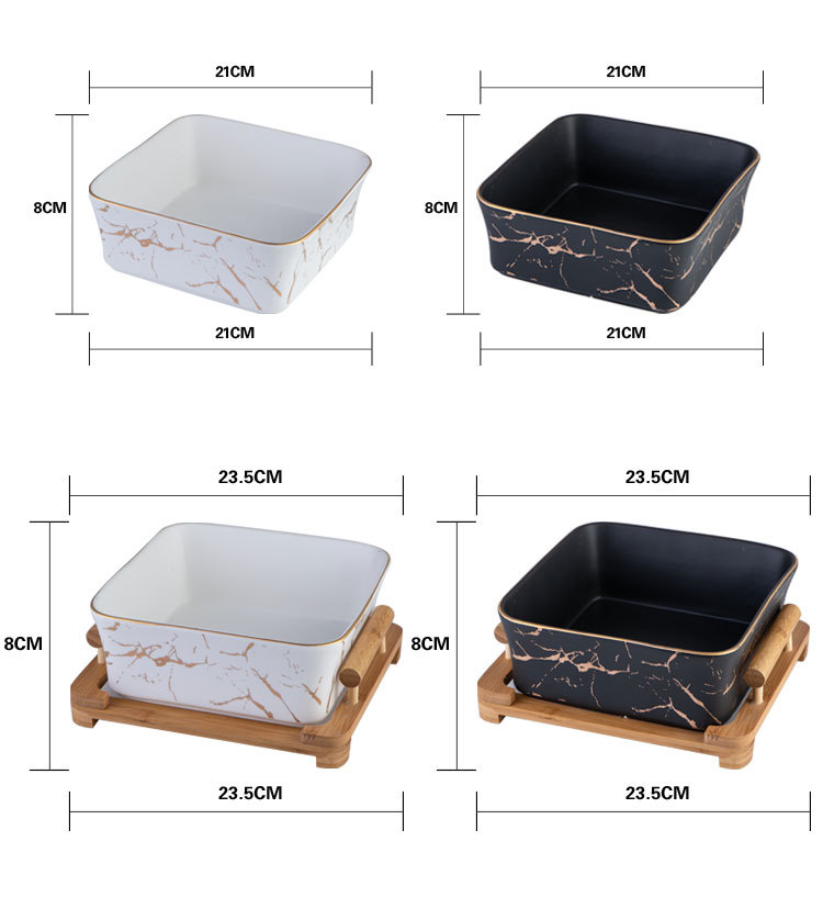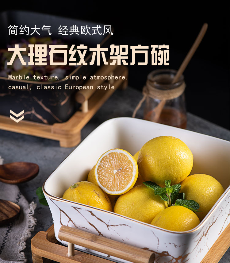 Nordic Style Fruit Plate Creative Wooden Frame Square Bowl Household Ceramic Fruit Plate Square Dessert Bowl Fruit Salad Bowl