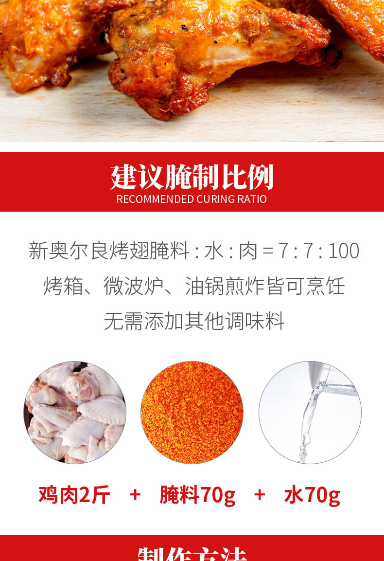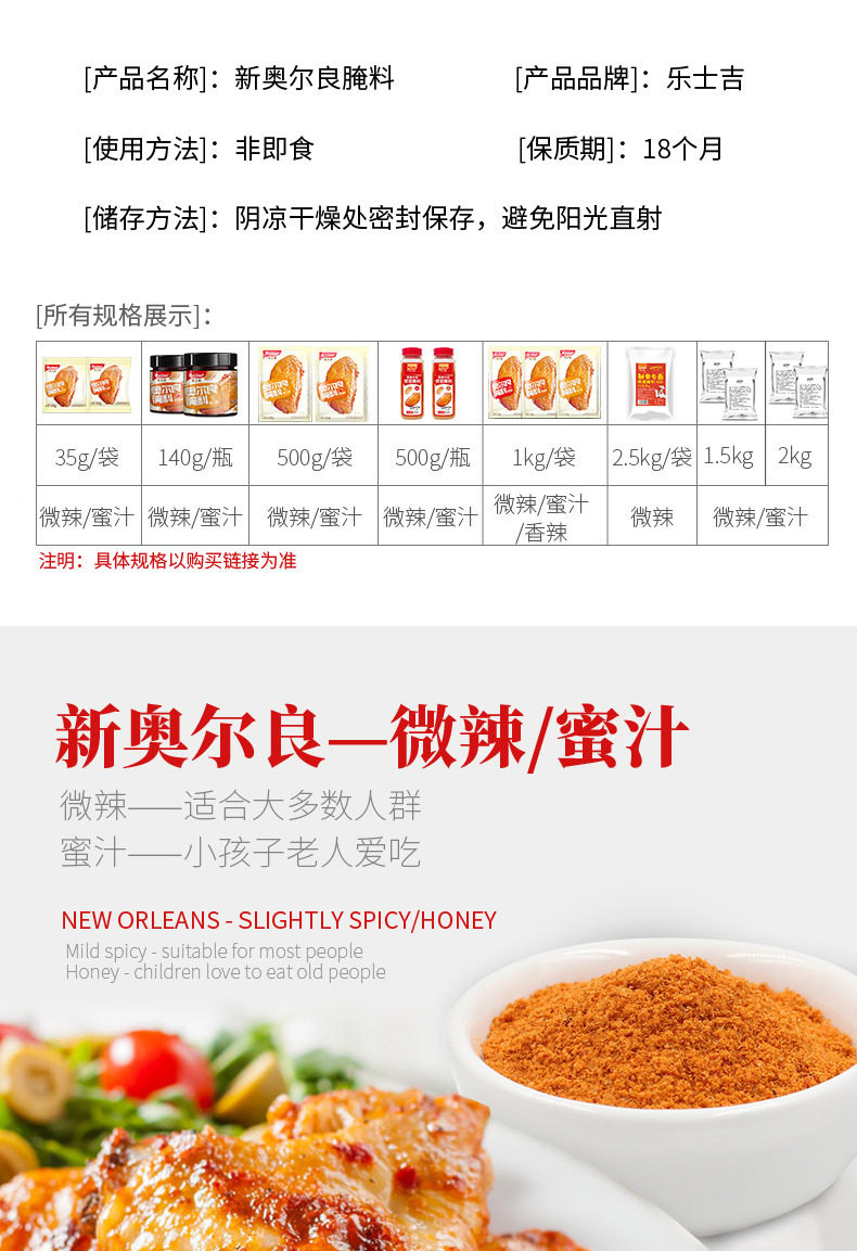 | Packaging specifications | 140g Orleans marinade slightly spicy,140g Orleans marinade honey |