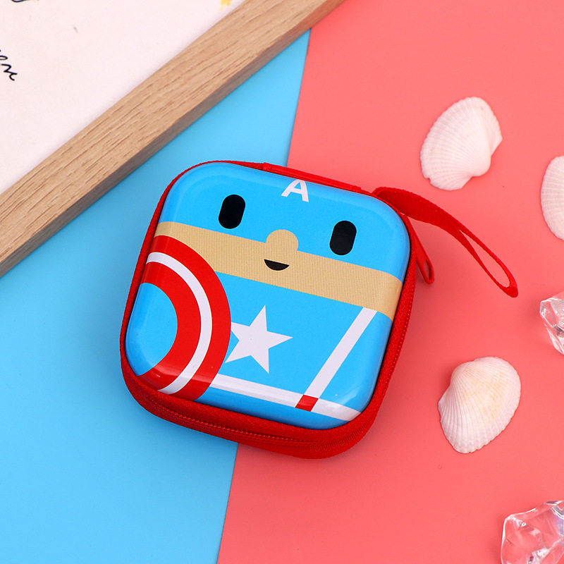 Creative Square Tinplate Coin Purse, Cute Marvel Coin Key Earphone Data Cable Storage Box, Creative Storage
