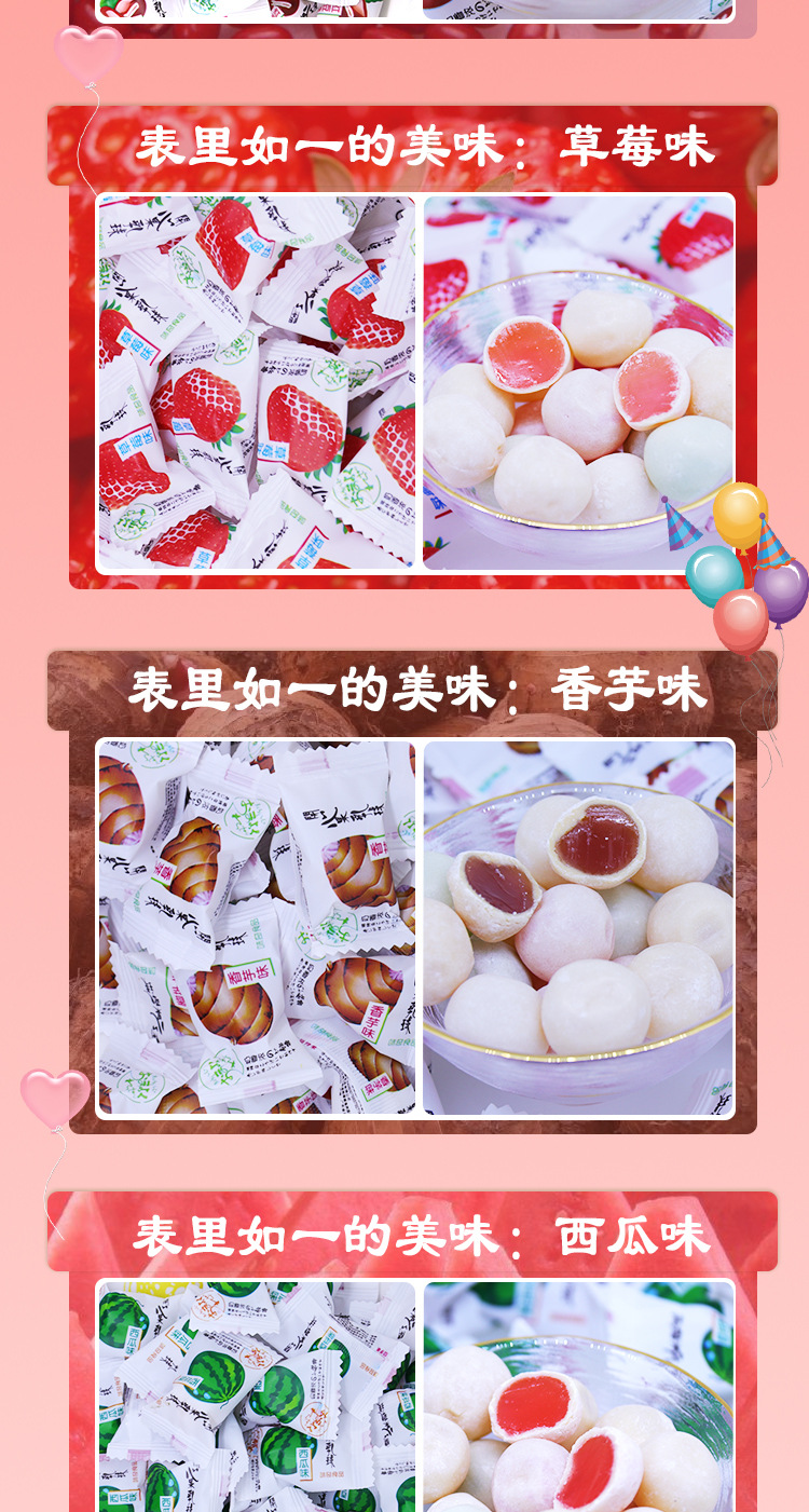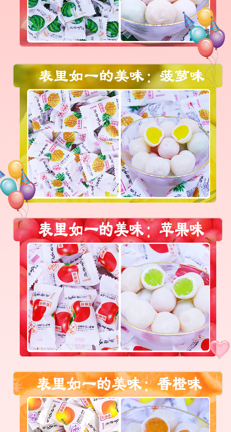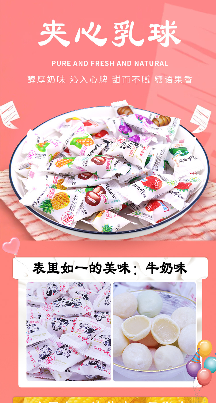 | Packing specification | Pure milk flavor sandwich milk ball 500g(5 kg/bag 6 bags/piece),Corn flavor sandwich milk ball 500g(5 kg/bag 6 bags/piece),Grape flavor sandwich milk ball 500g(5 kg/bag 6 bags/piece),Red bean flavor sandwich milk ball 500g(5 kg/bag 6 bags/piece),500g strawberry sandwich milk balls (5 kg/bag 6 bags/piece),Taro sandwich milk ball 500g(5 kg/bag 6 bags/piece),Watermelon flavor sandwich milk ball 500g(5 kg/bag 6 bags/piece),Pineapple flavor sandwich milk ball 500g(5 kg/bag 6 bags/piece),Apple-flavored sandwich milk balls 500g(5 kg/bag 6 bags/piece),Orange flavor sandwich breast ball 500g(5 kg/bag 6 bags/piece) |